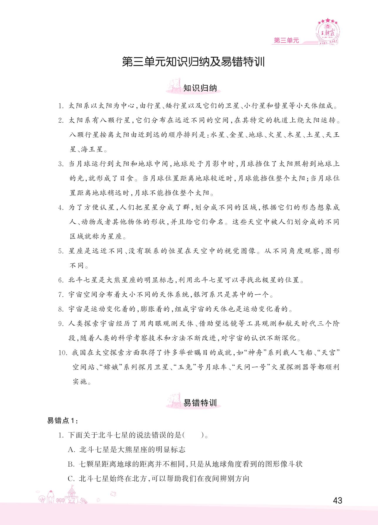2022下册六年级科学教科版 第三单元知识归纳及易错特训