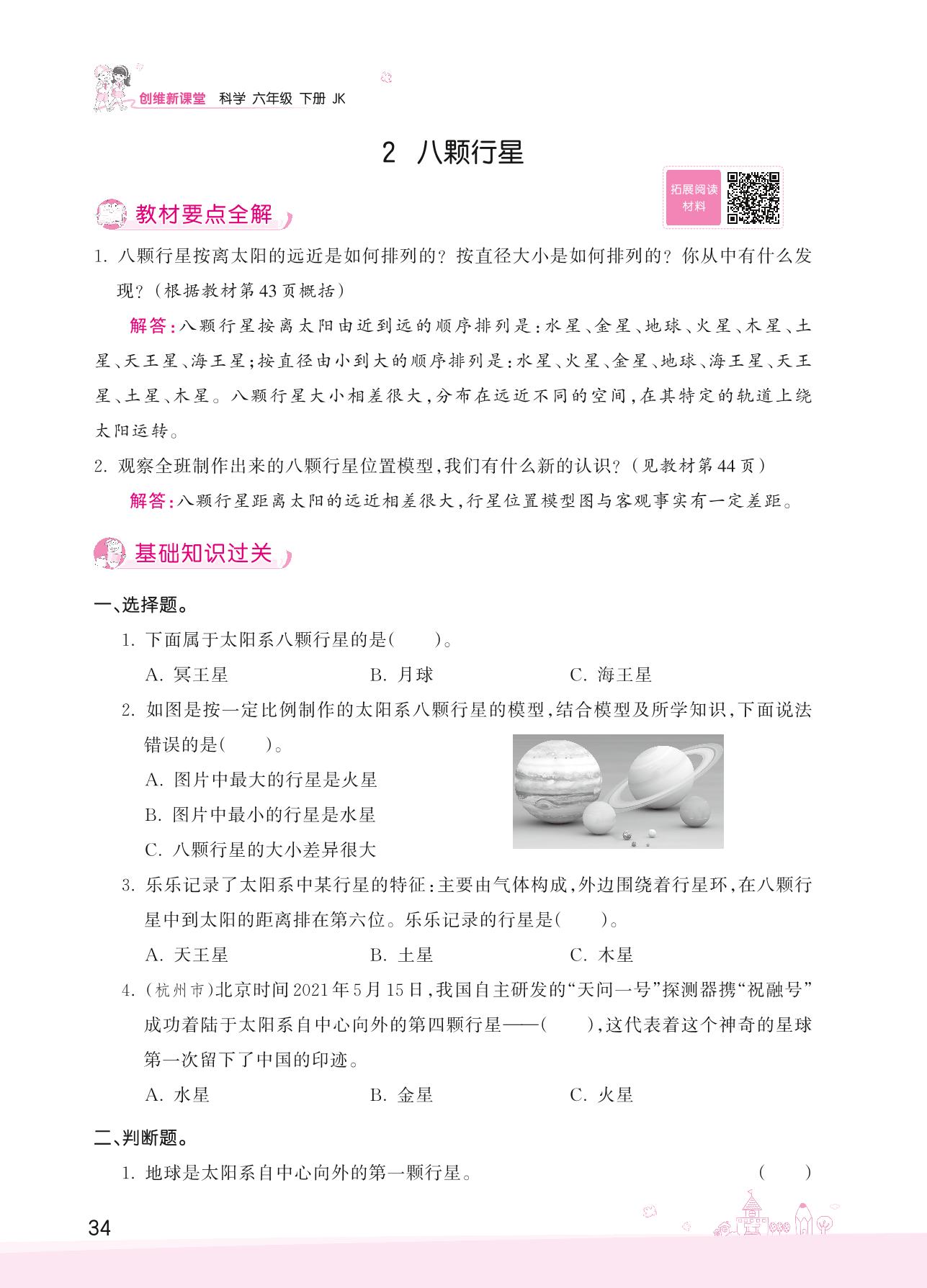 2022下册六年级科学教科版 第三单元——2 八颗行星
