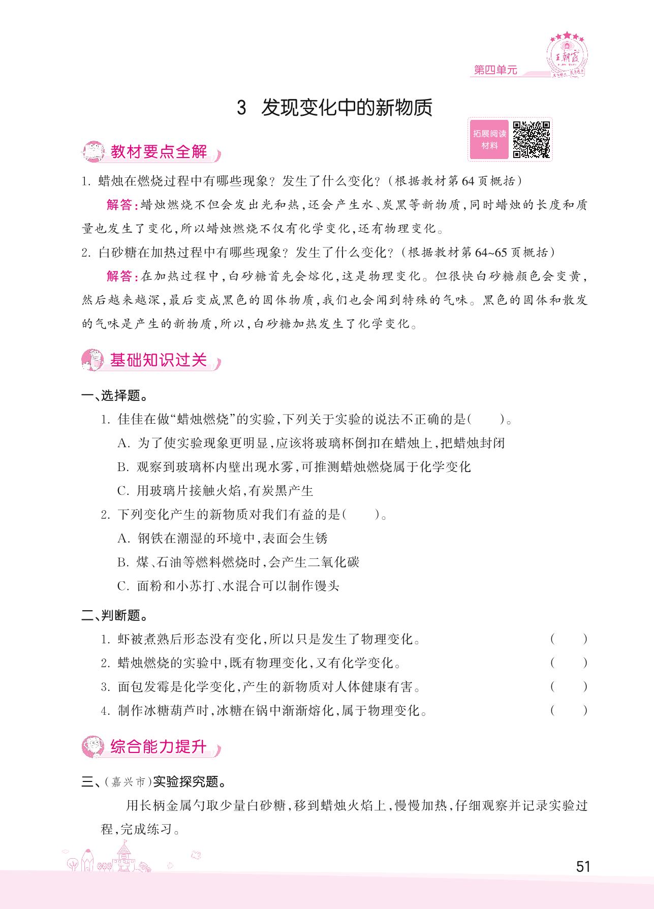 2022下册六年级科学教科版 第四单元——3 发现变化中的新物质