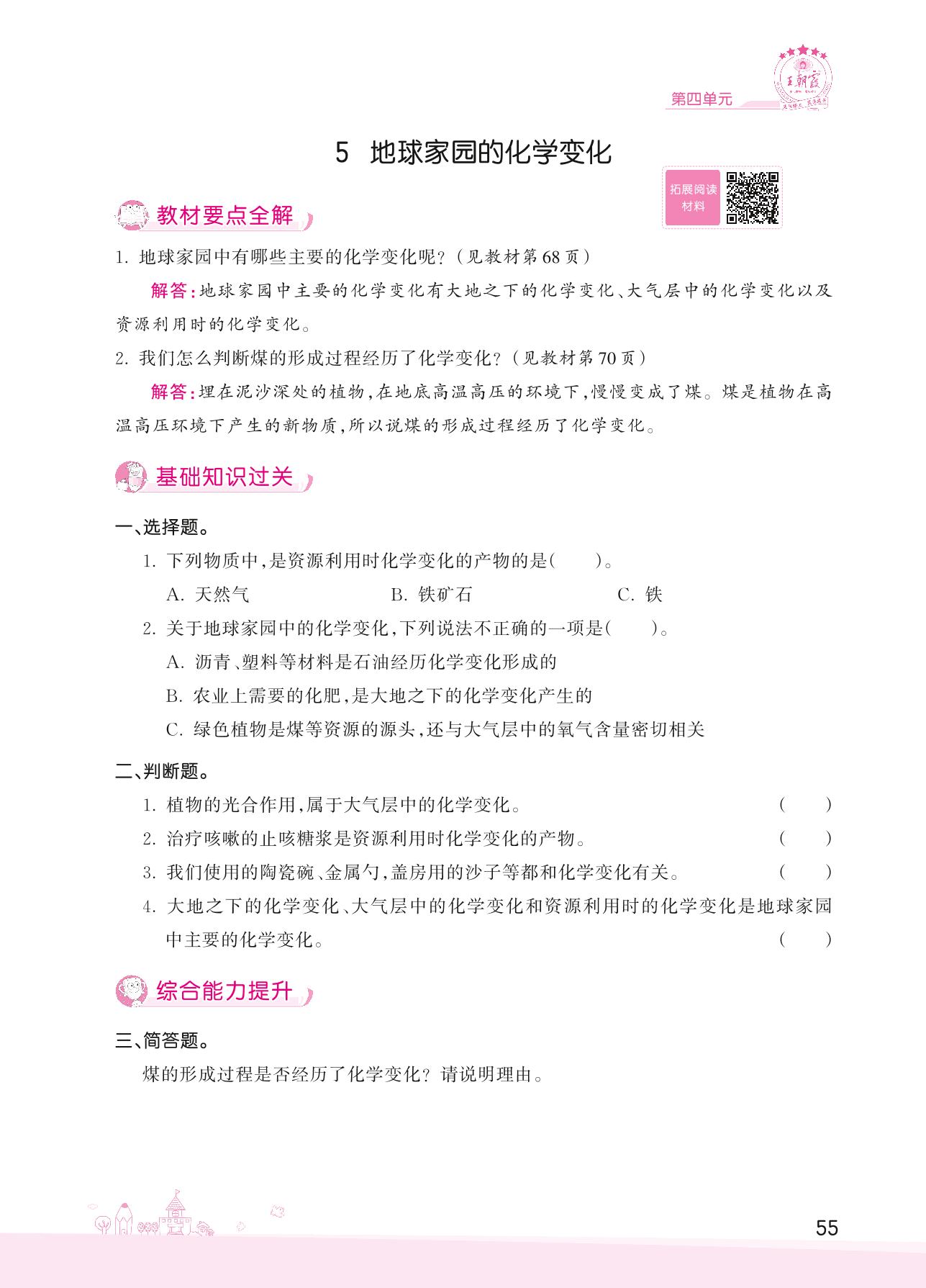 2022下册六年级科学教科版 第四单元——5 地球家园的化学变化