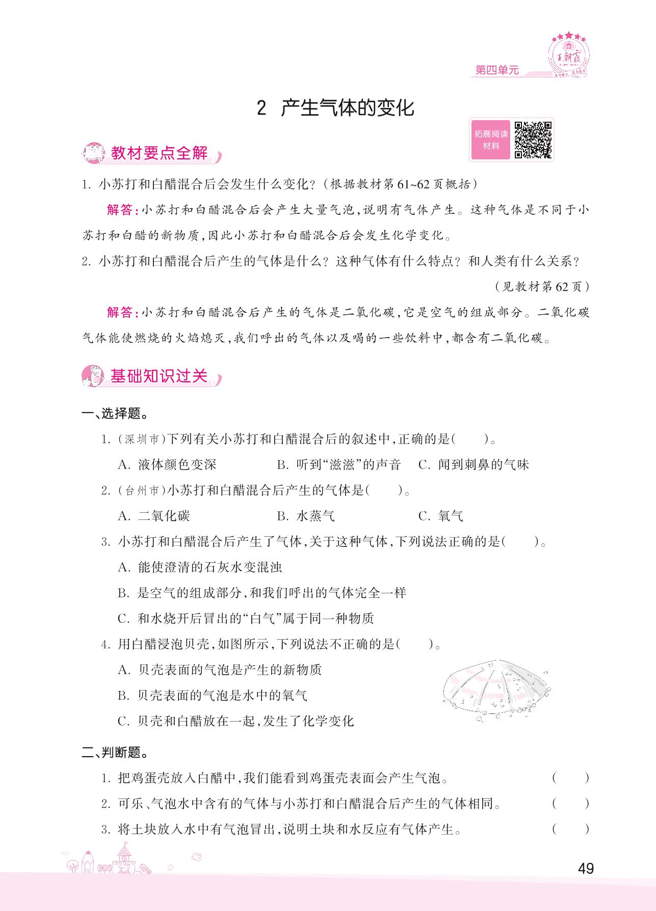 2022下册六年级科学教科版 第四单元——2 产生气体的变化