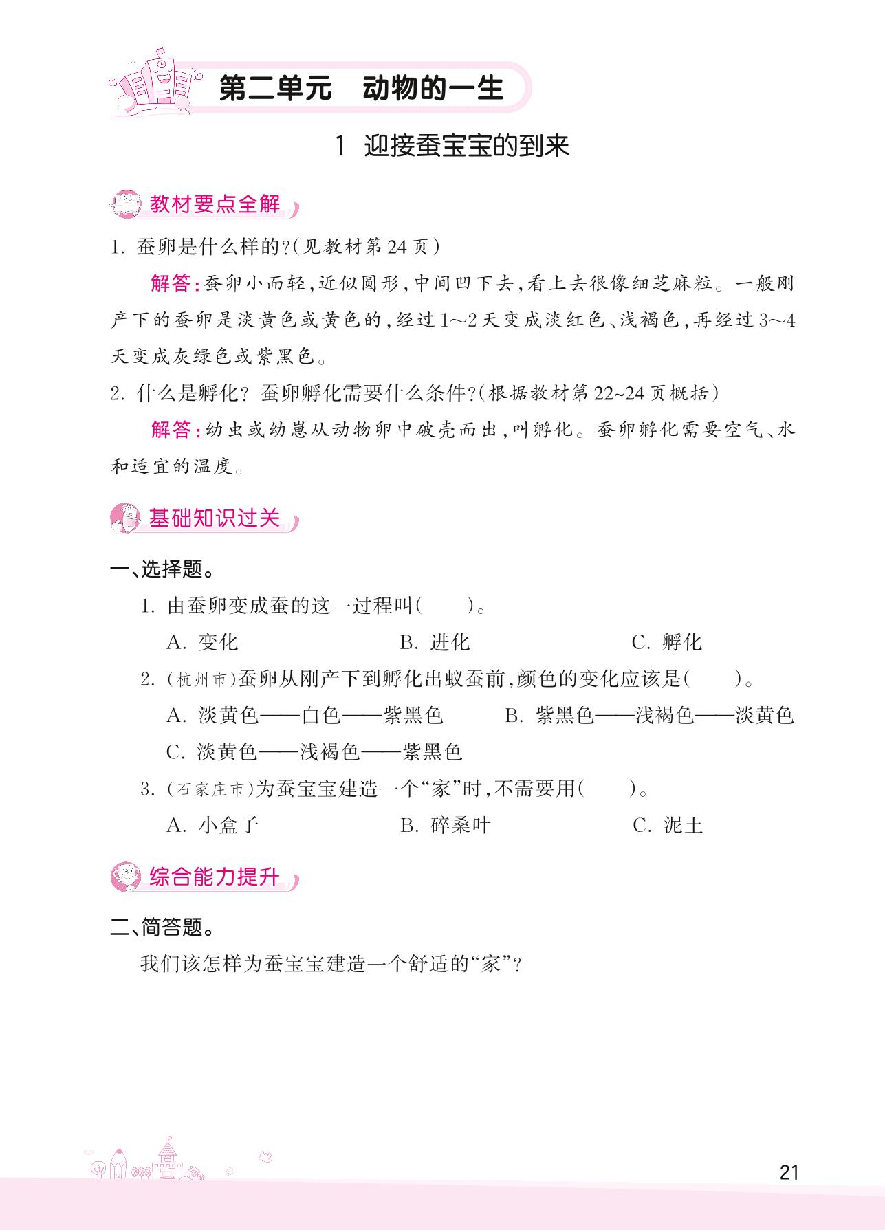 2022下册三年级科学教科版 第二单元——1 迎接蚕宝宝的到来