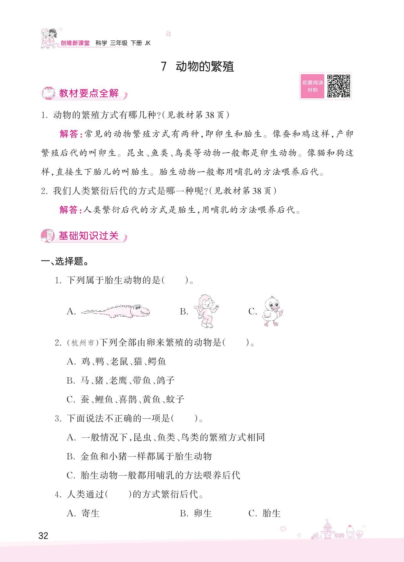 2022下册三年级科学教科版 第二单元——7 动物的繁殖