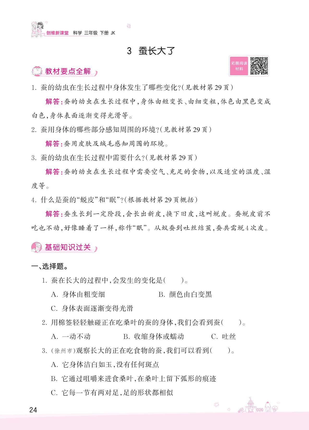 2022下册三年级科学教科版 第二单元——3 蚕长大了
