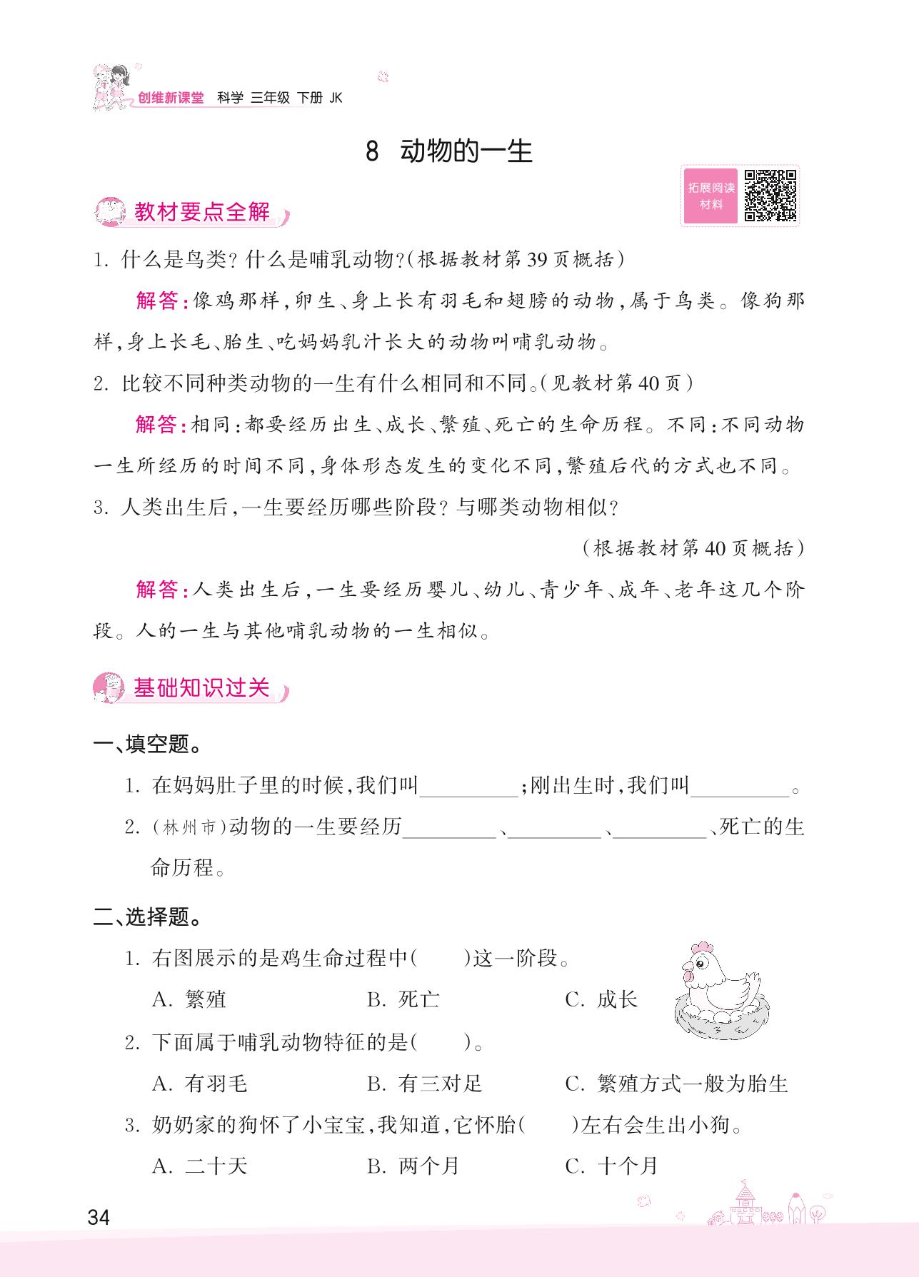 2022下册三年级科学教科版 第二单元——8 动物的一生