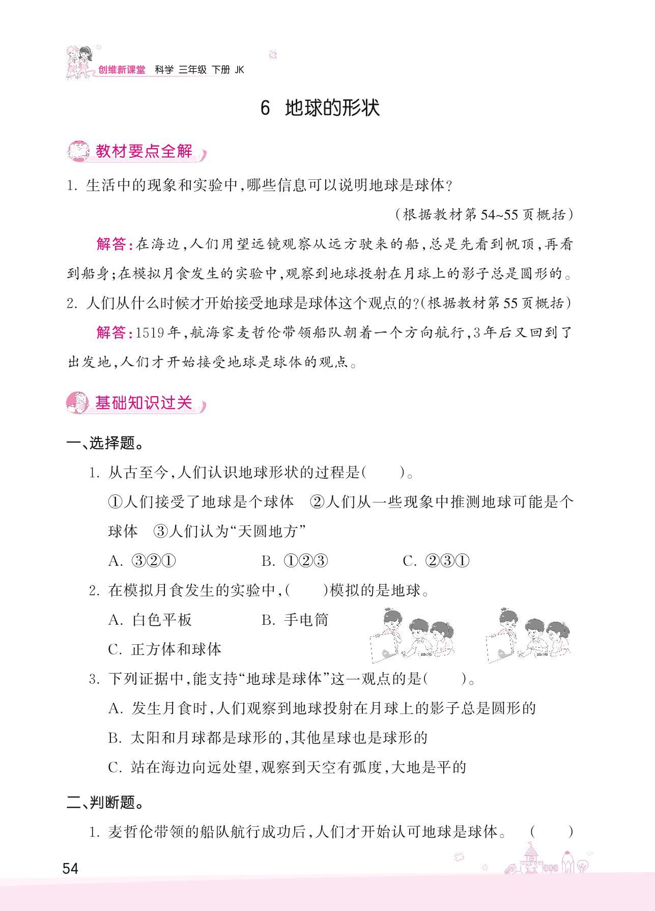 2022下册三年级科学教科版 第三单元——6 地球的形状