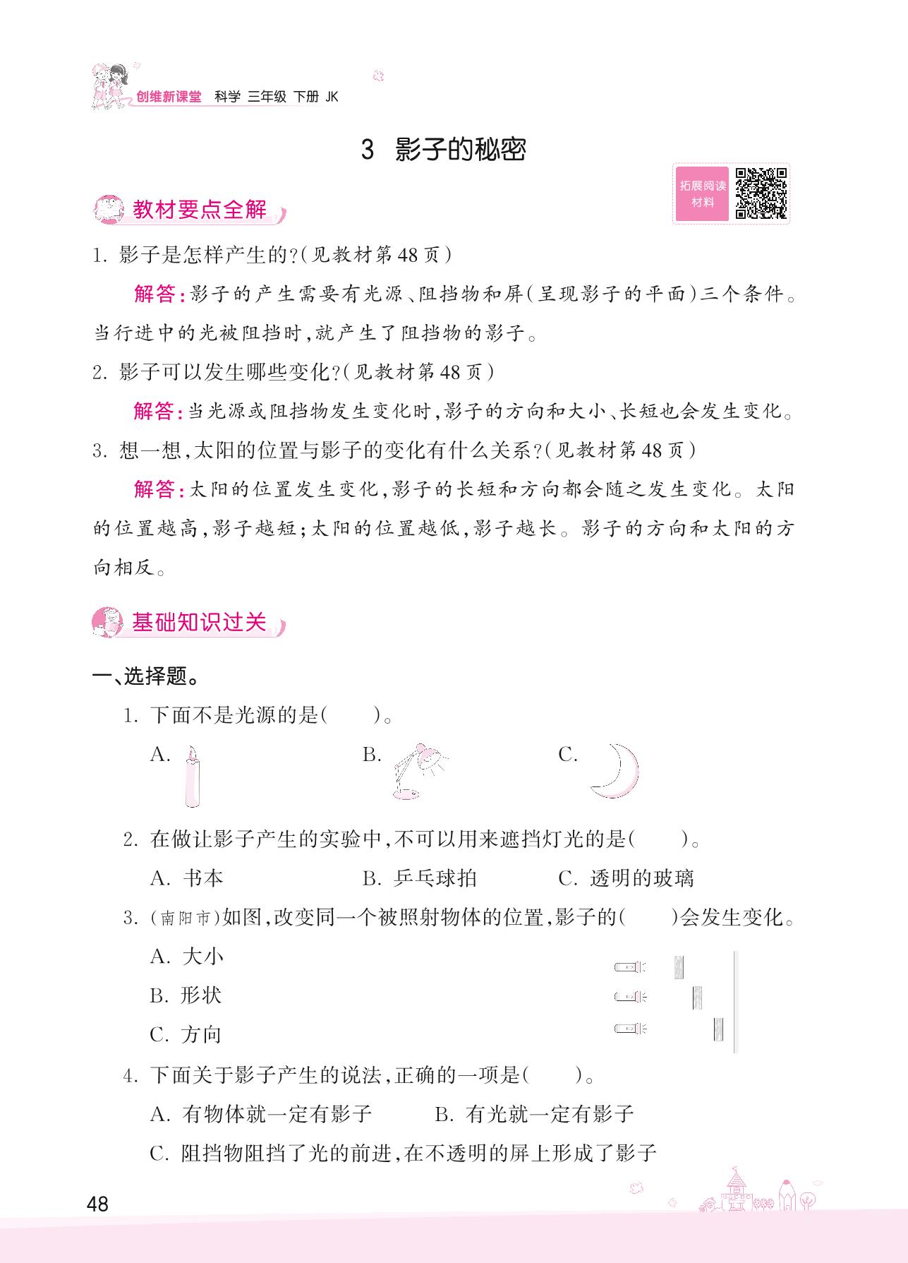 2022下册三年级科学教科版 第三单元——3 影子的秘密