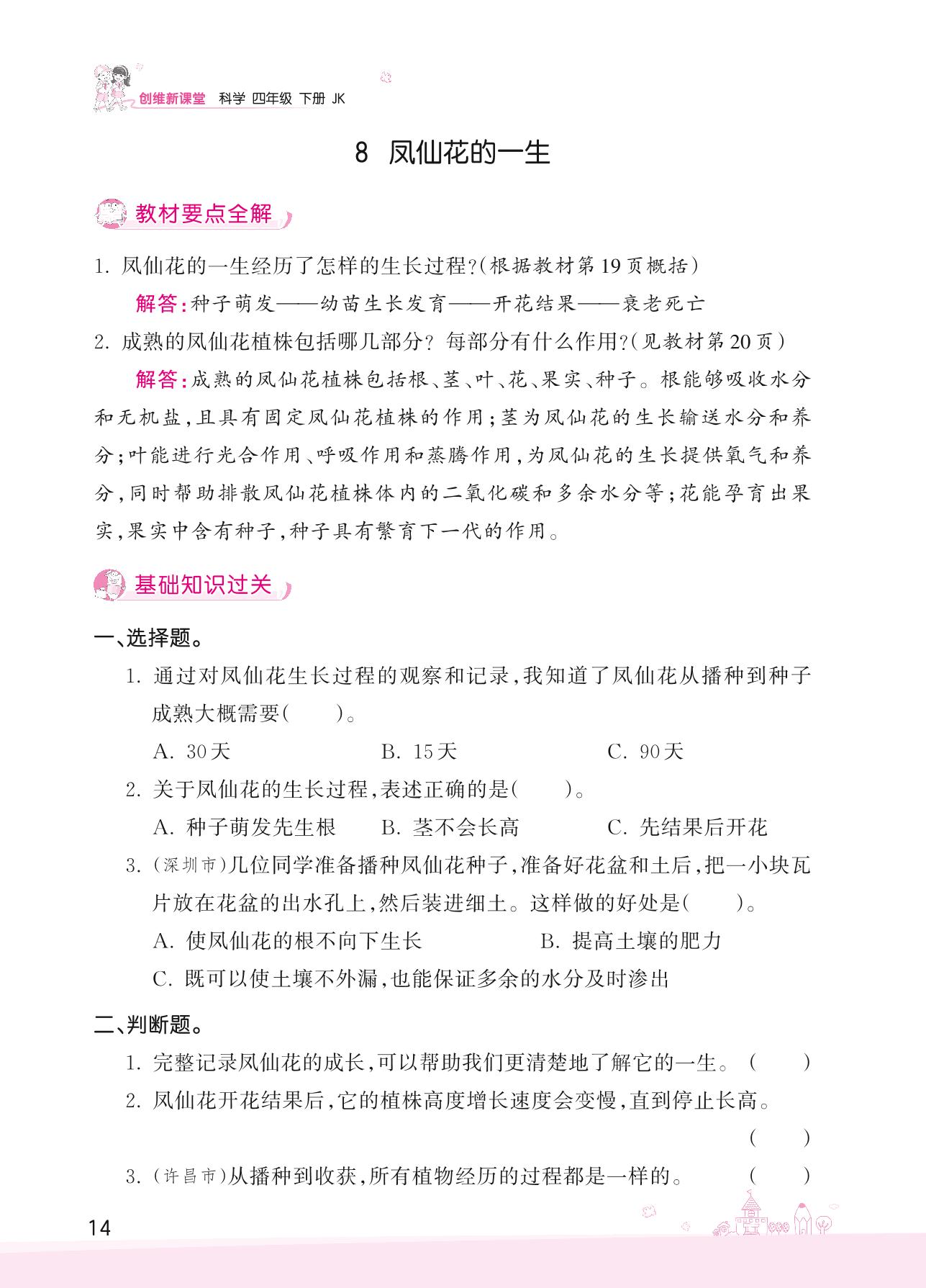 2022下册四年级科学教科版 第一单元——8 凤仙花的一生