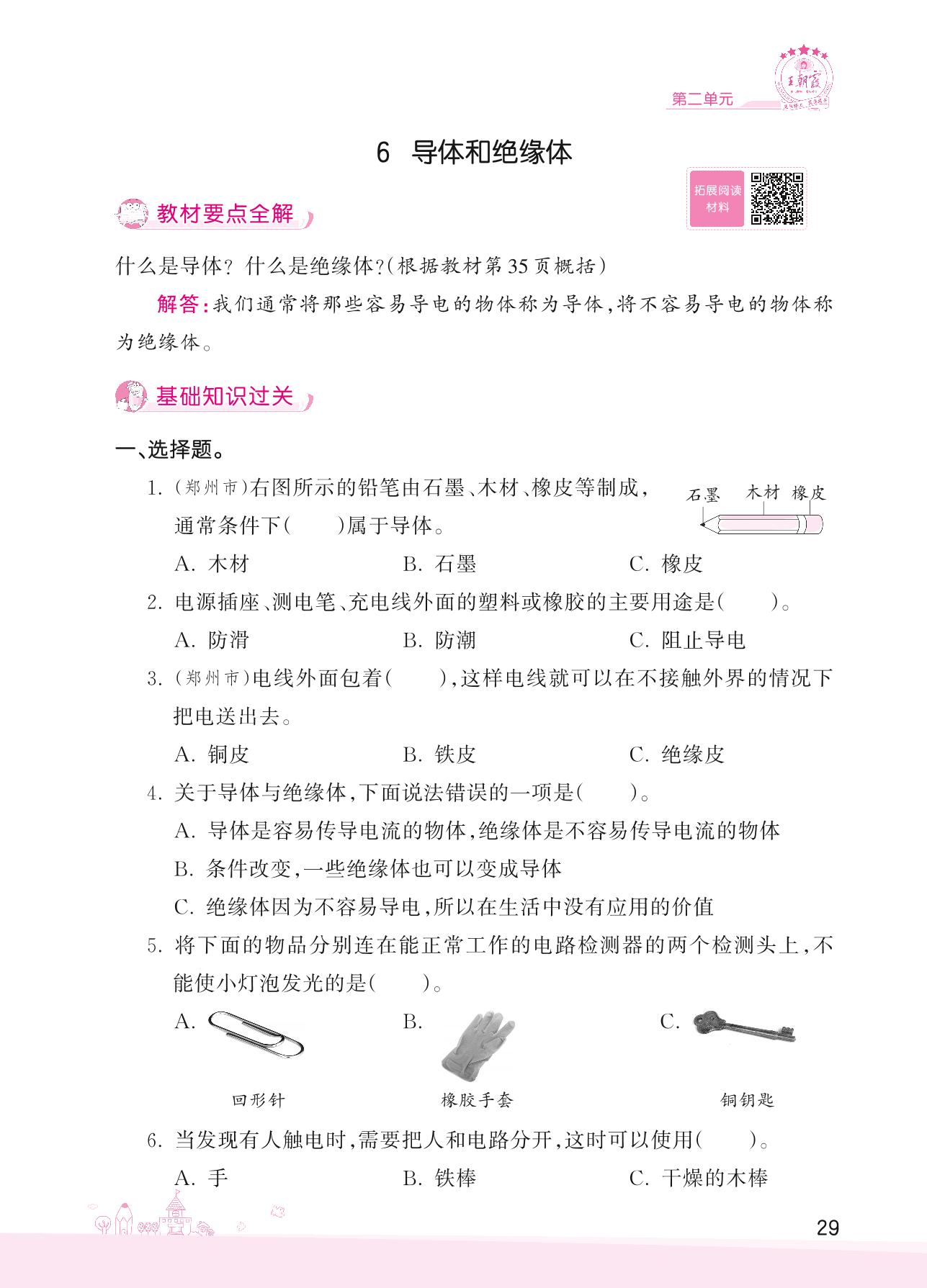 2022下册四年级科学教科版 第二单元——6 导体和绝缘体
