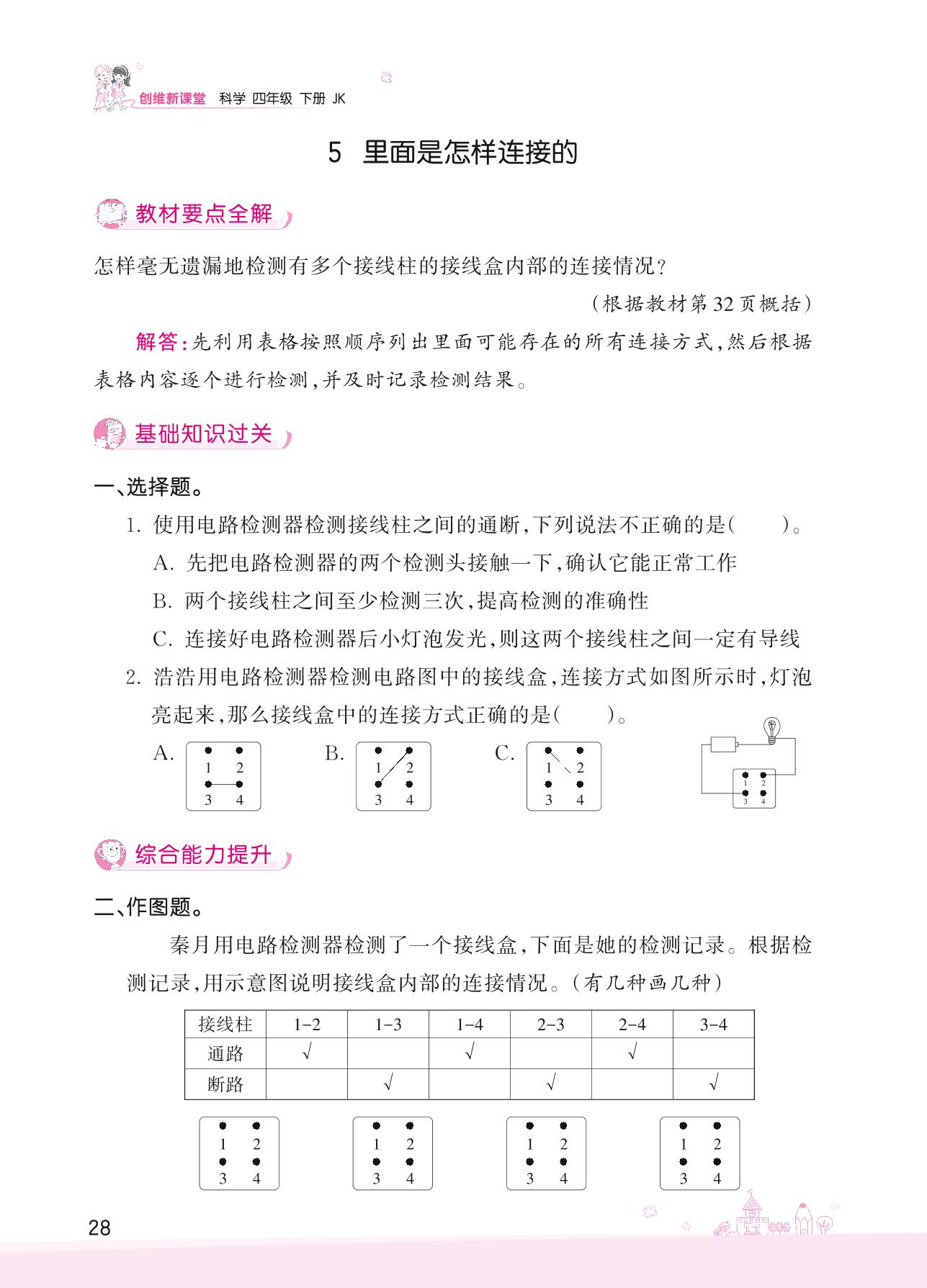 2022下册四年级科学教科版 第二单元——5 里面是怎样连接的