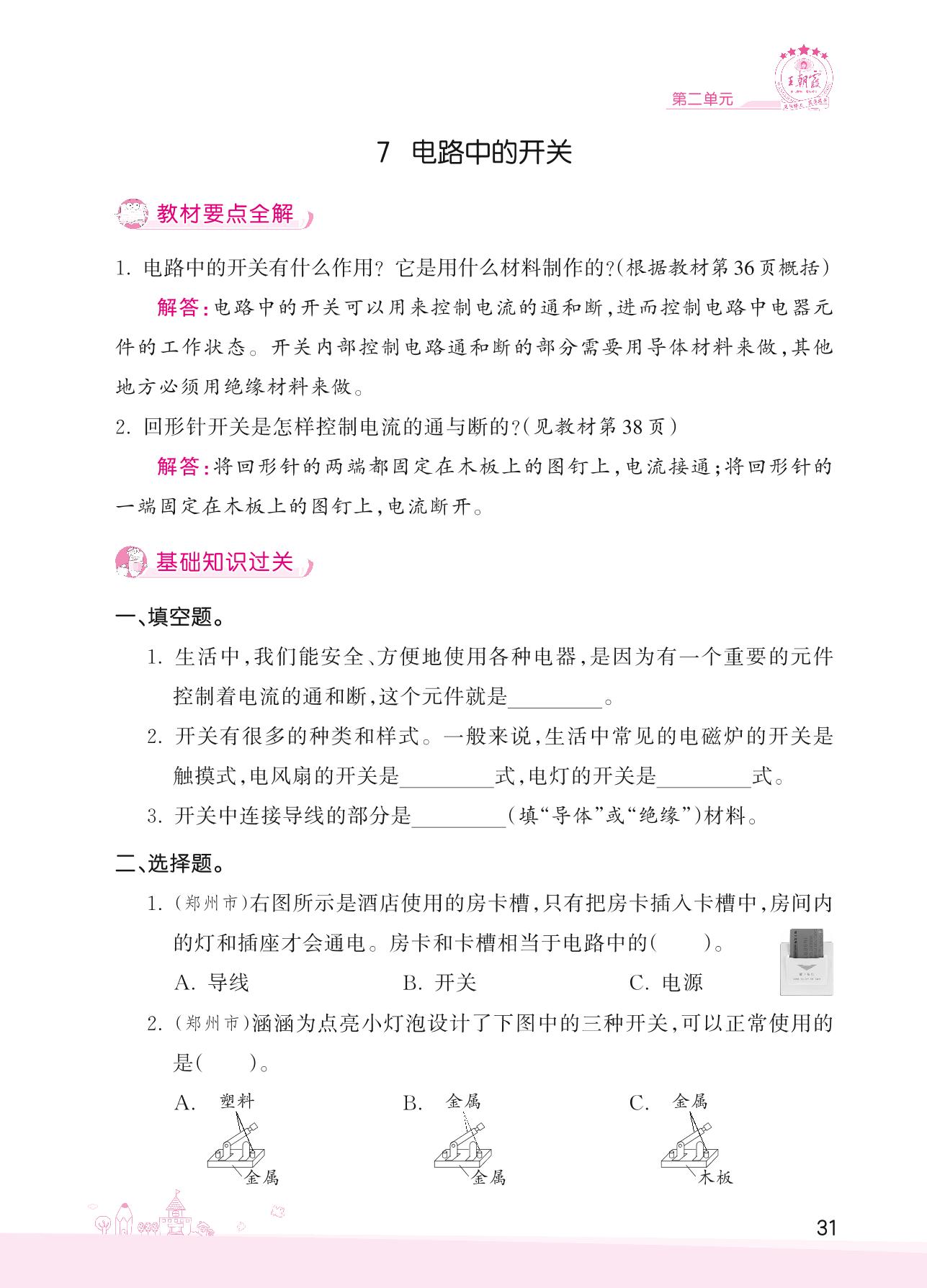 2022下册四年级科学教科版 第二单元——7 电路中的开关