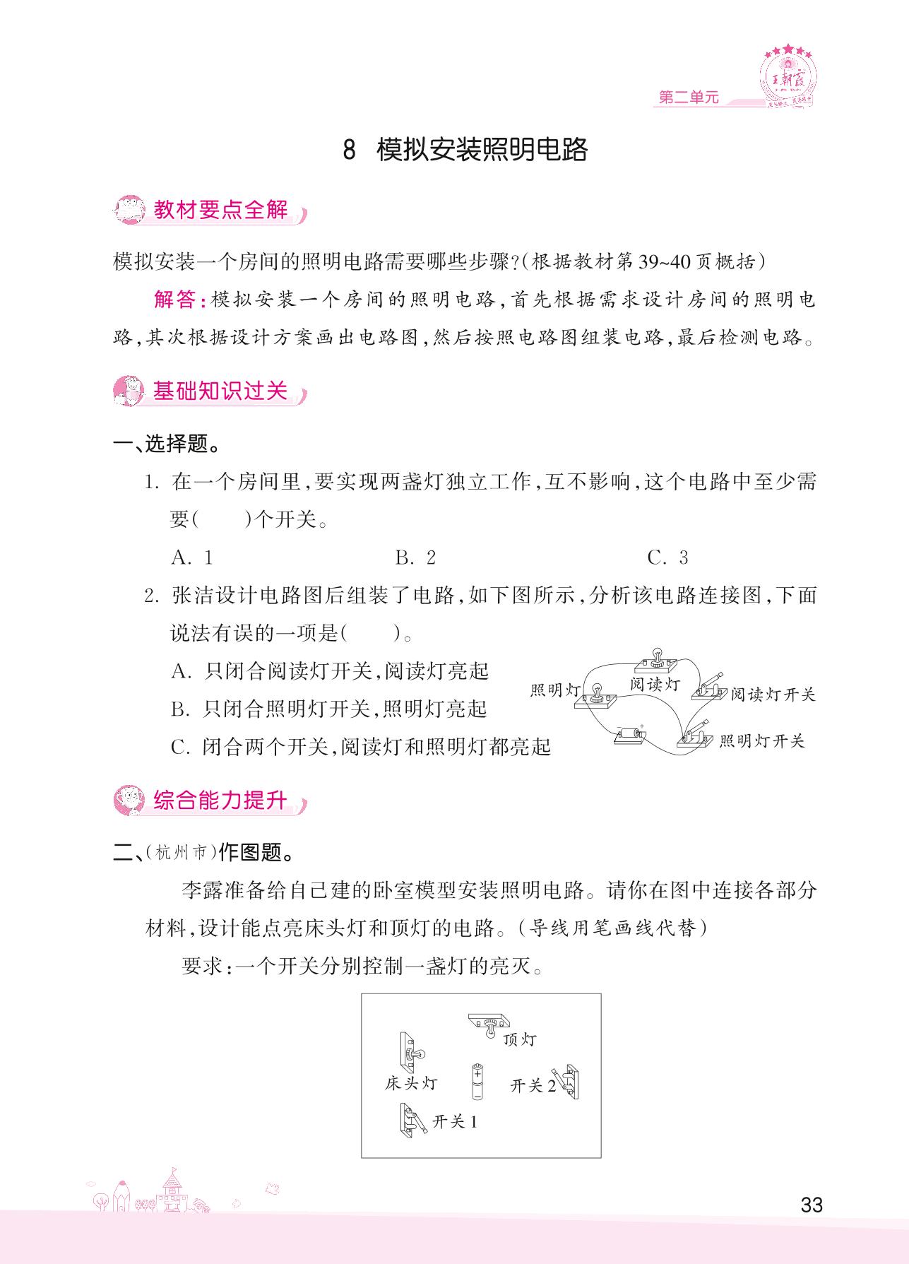 2022下册四年级科学教科版 第二单元——8 模拟安装照明电路