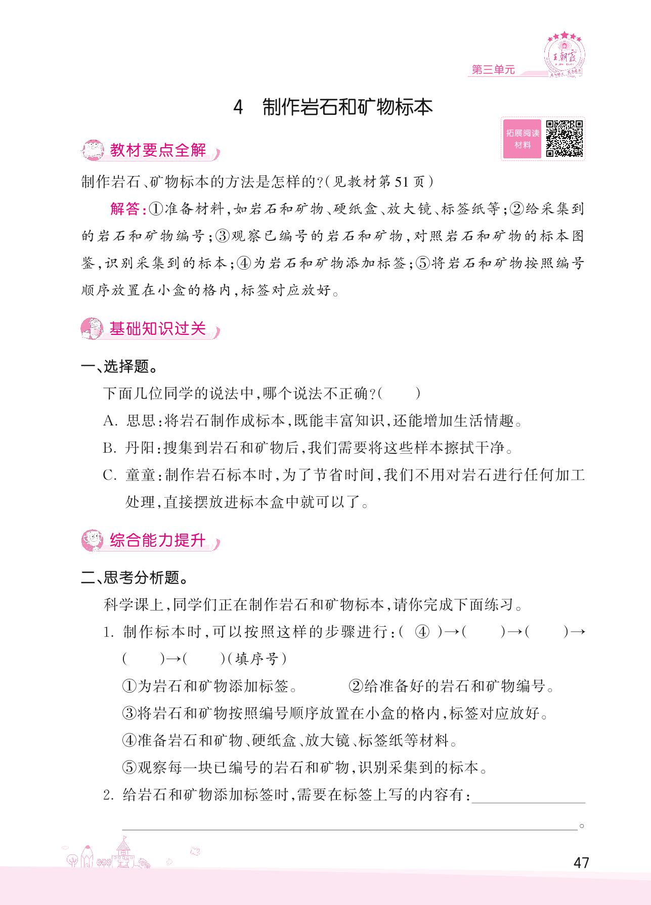 2022下册四年级科学教科版 第三单元——4 制作岩石和矿物标本