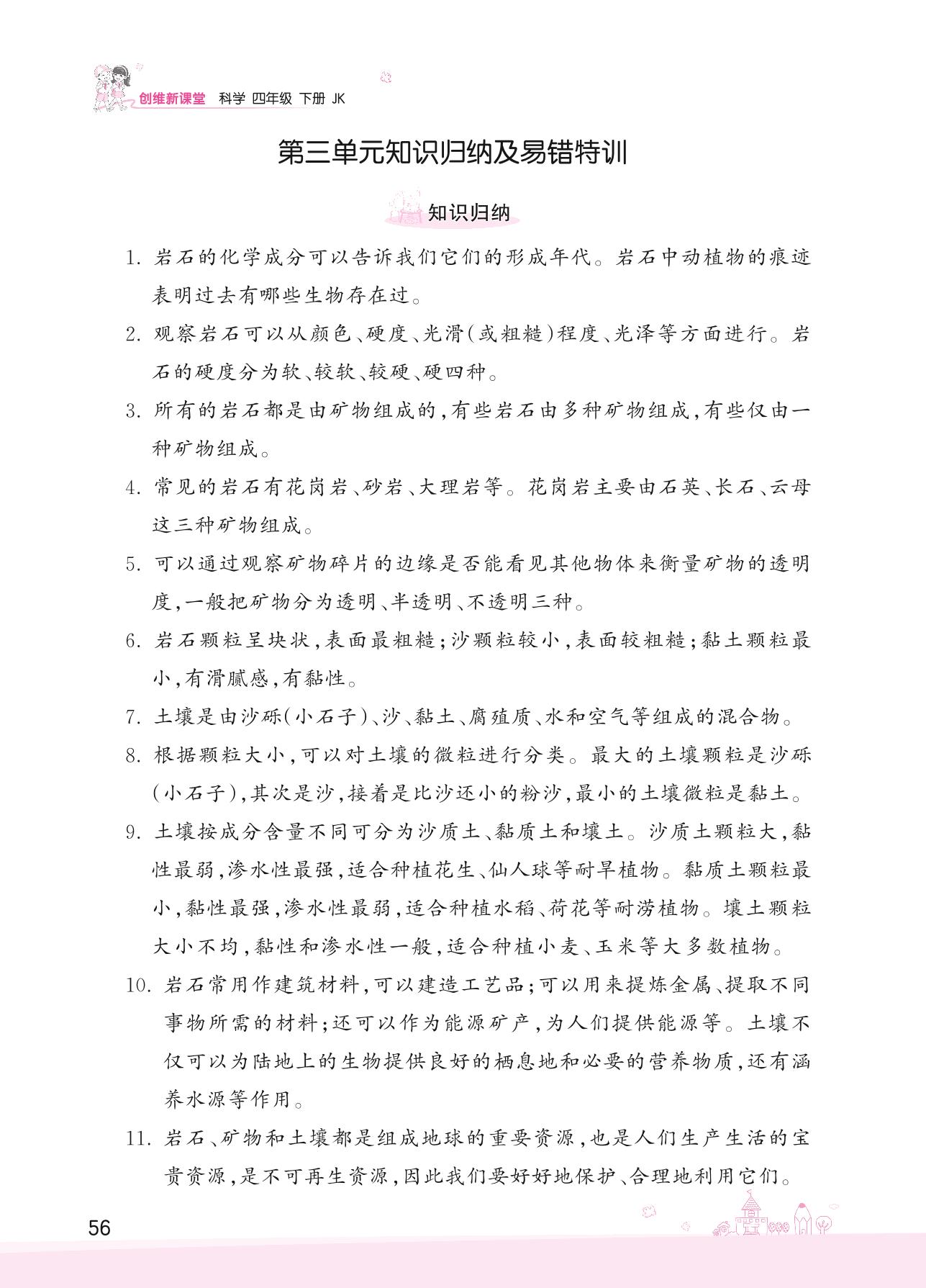 2022下册四年级科学教科版 第三单元知识归纳及易错特训