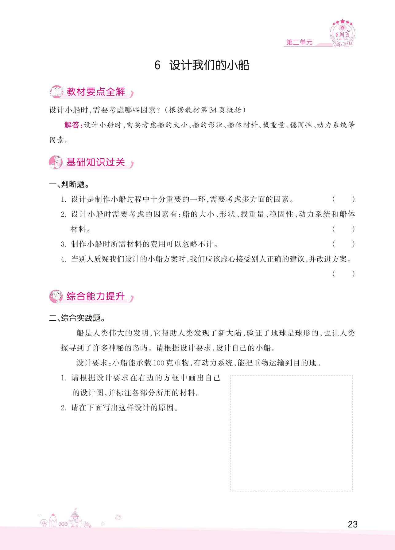 2022下册五年级科学教科版 第二单元——6 设计我们的小船