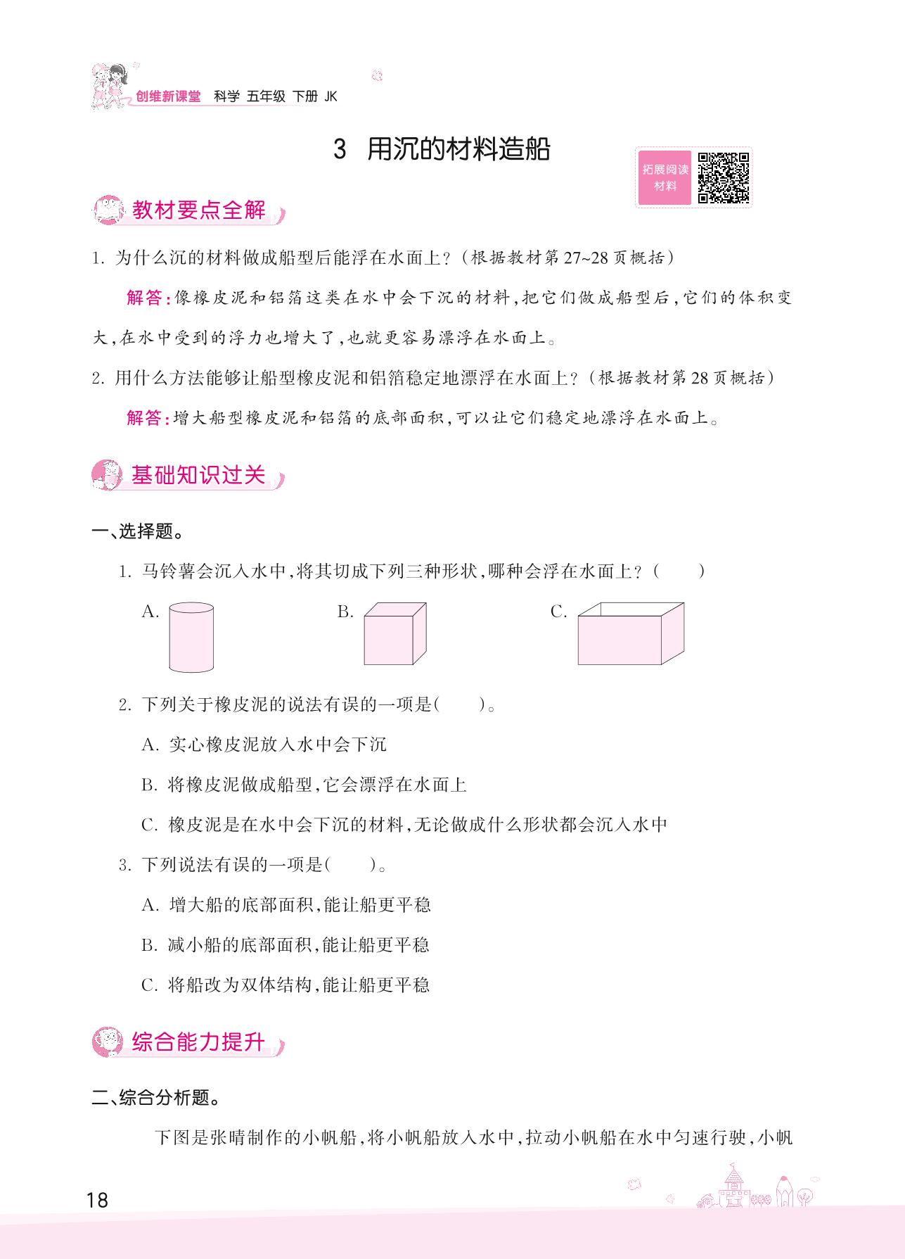 2022下册五年级科学教科版 第二单元——3 用沉的材料造船