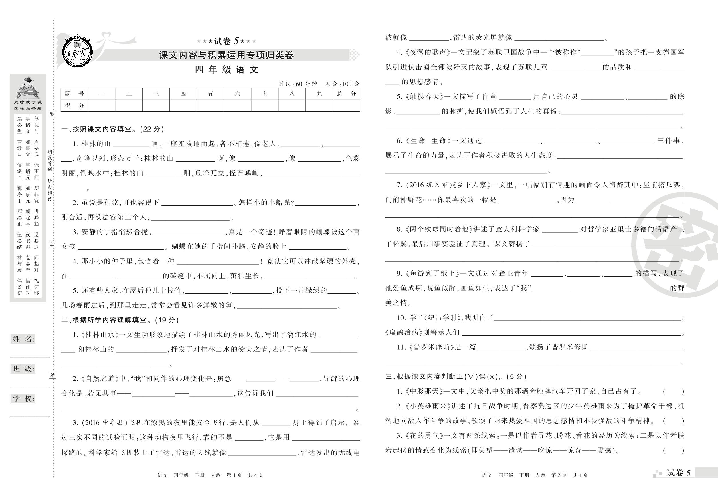 王朝霞期末专项卷——课文内容与积累运用专项归类卷四年级下册语文(人教版)_R210801225121【5】