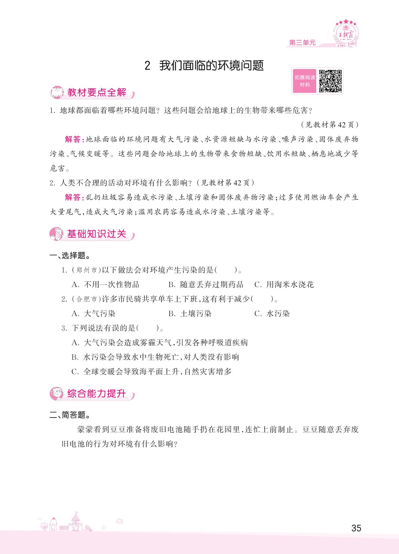 2022下册五年级科学教科版 第三单元——2 我们面临的环境问题