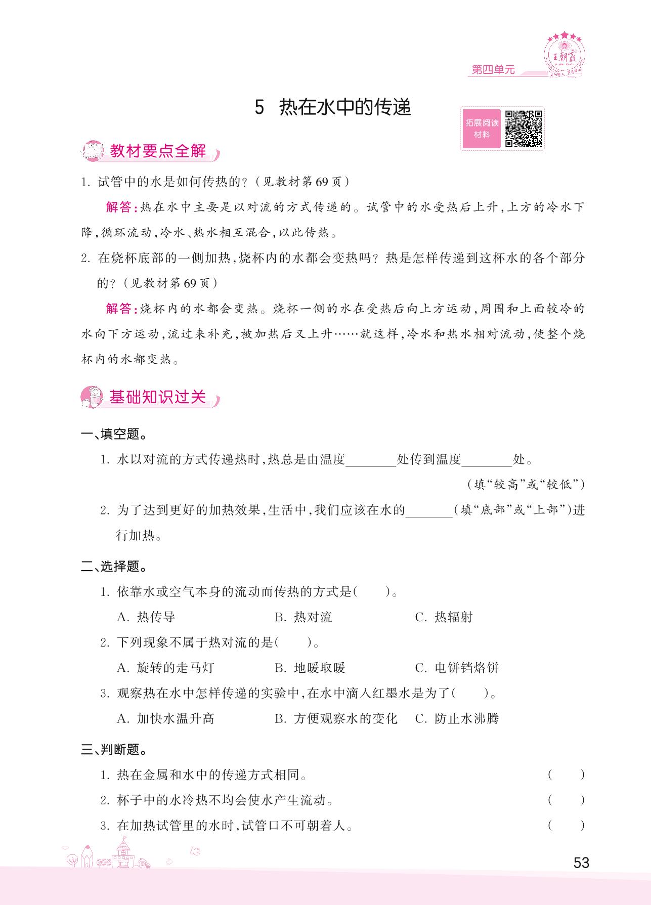 2022下册五年级科学教科版 第四单元——5 热在水中的传递
