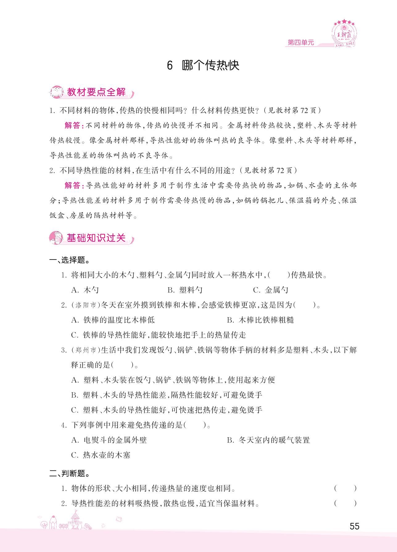 2022下册五年级科学教科版 第四单元——6 哪个传热快