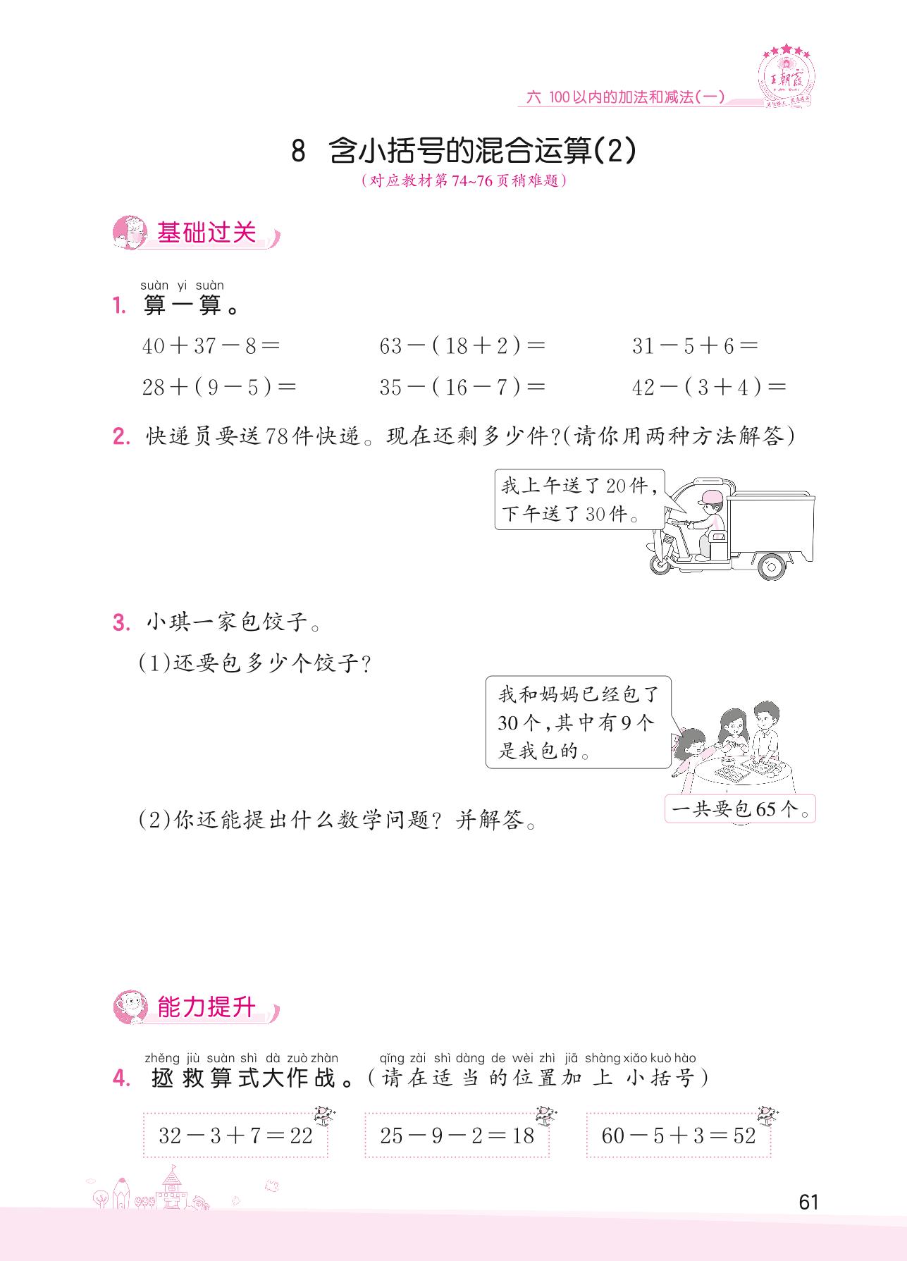 2022下册一年级数学人教版 六 100以内的加法和减法(一) ——8 含小括号的混合运算(2)