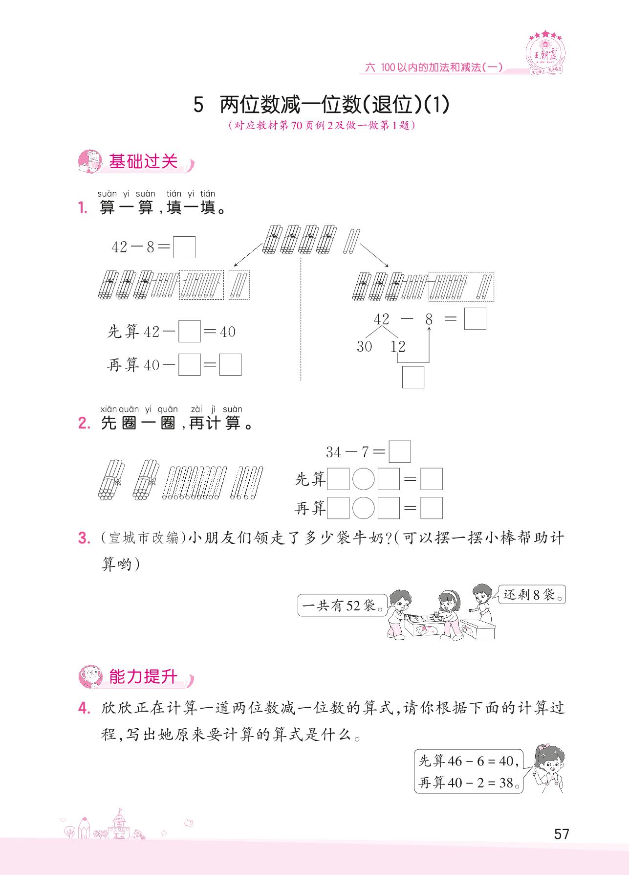 2022下册一年级数学人教版 六 100以内的加法和减法(一) ——5 两位数减一位数(退位)(1)