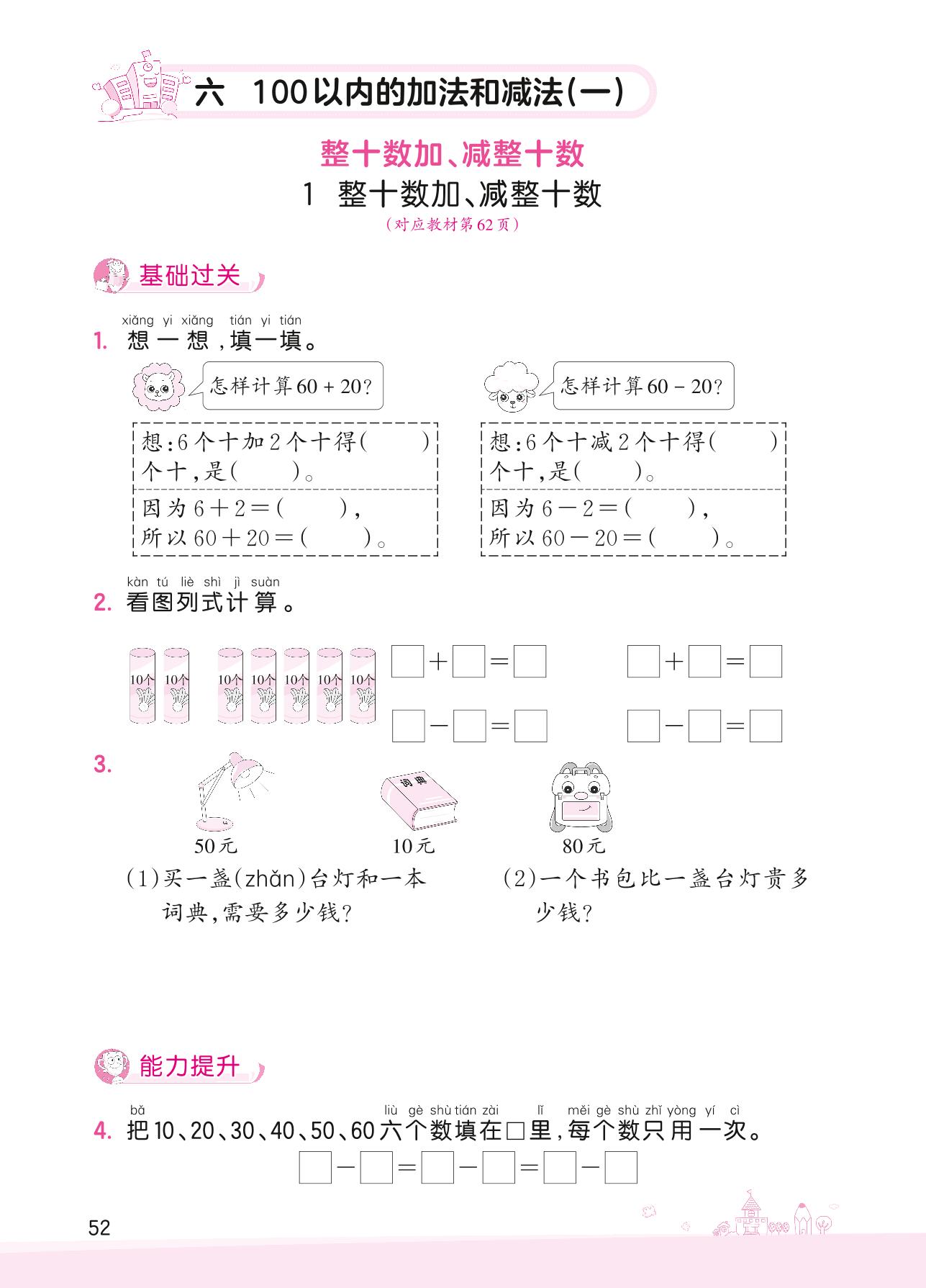2022下册一年级数学人教版 六 100以内的加法和减法(一) ——1 整十数加、减整十数