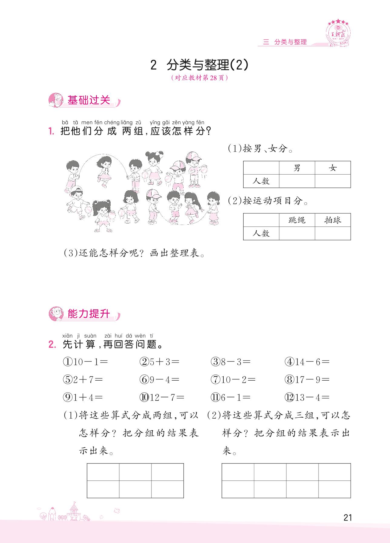 2022下册一年级数学人教版 三 分类与整理——2 分类与整理(2)