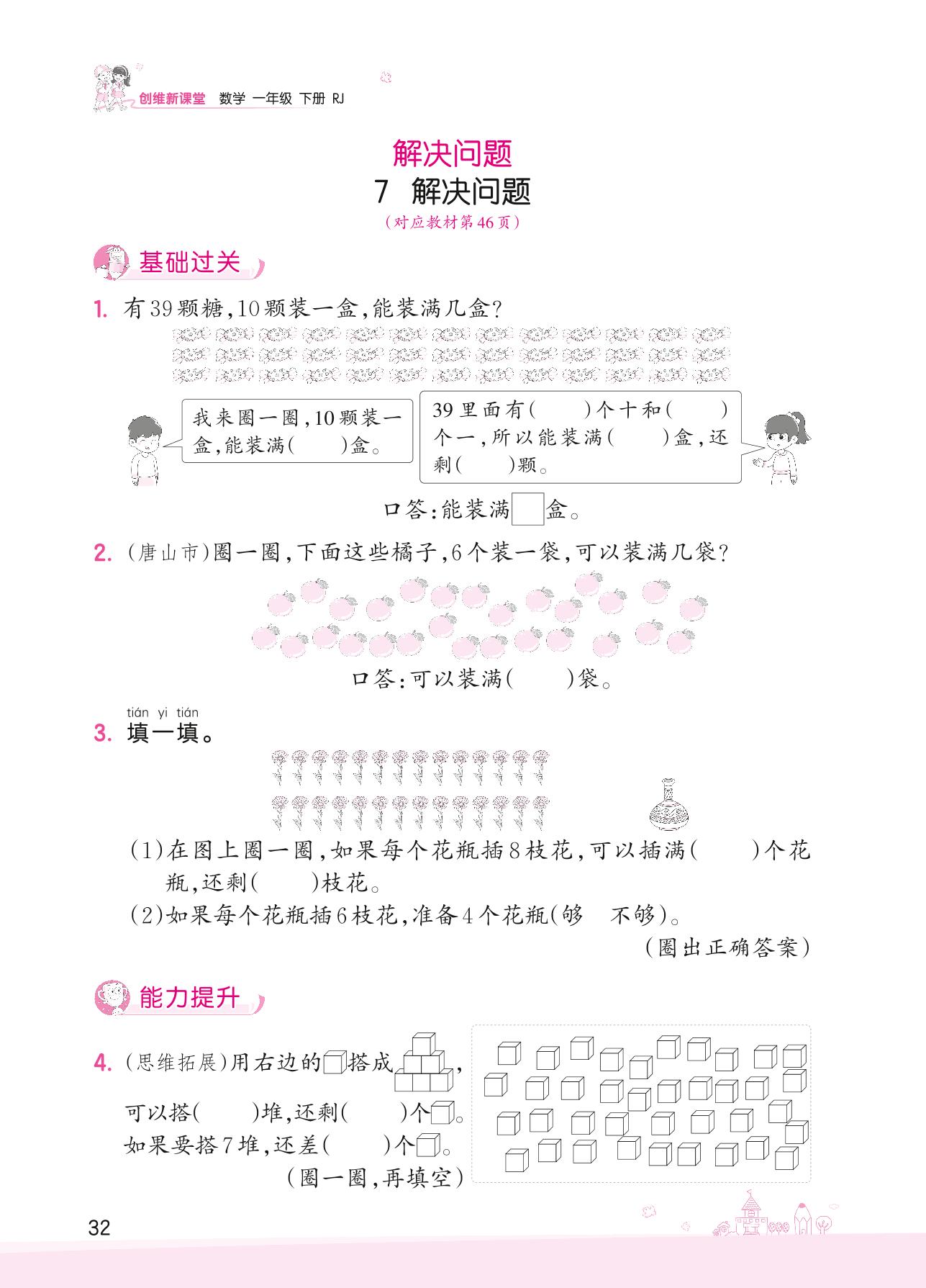 2022下册一年级数学人教版 四 100以内数的认识——7 解决问题