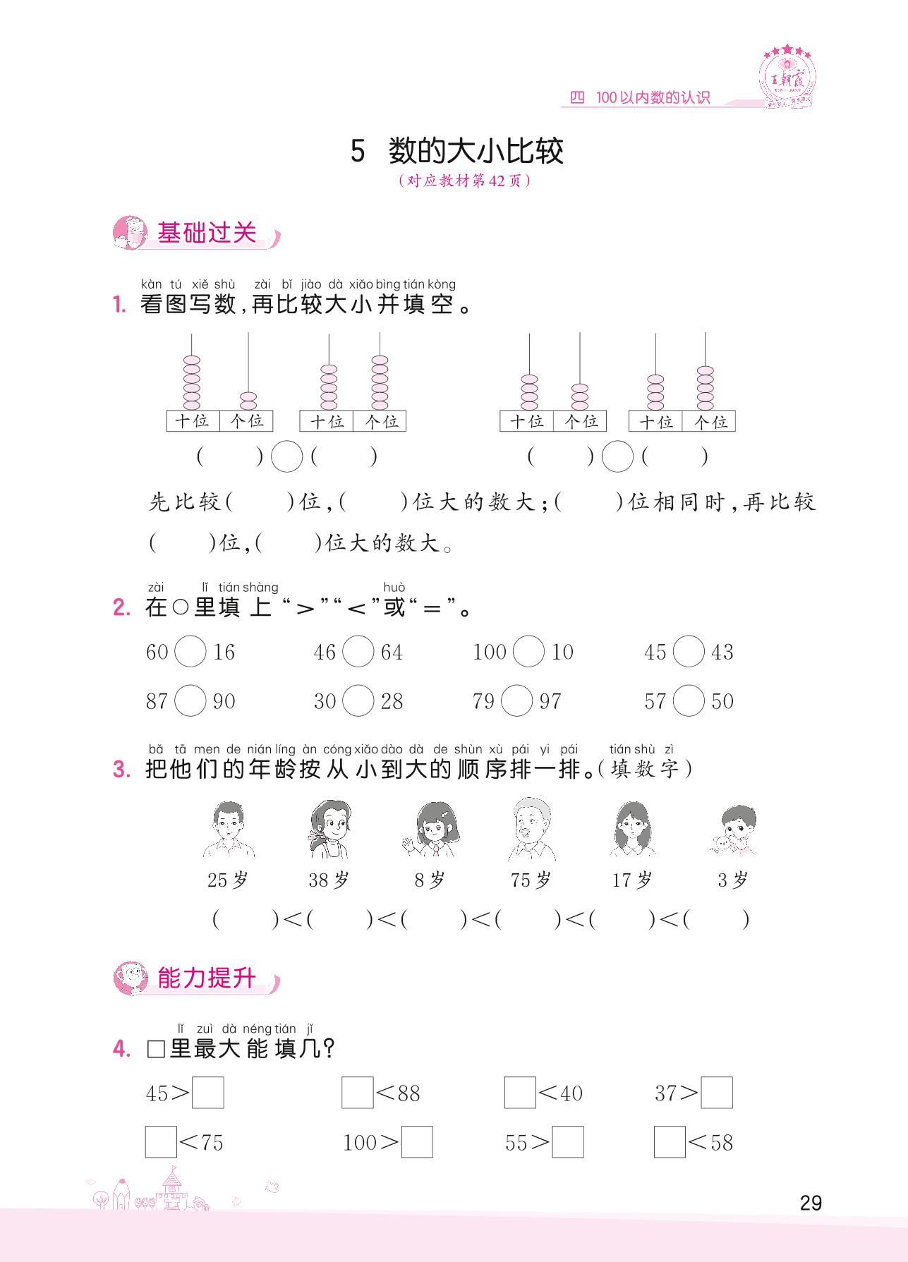2022下册一年级数学人教版 四 100以内数的认识——5 数的大小比较