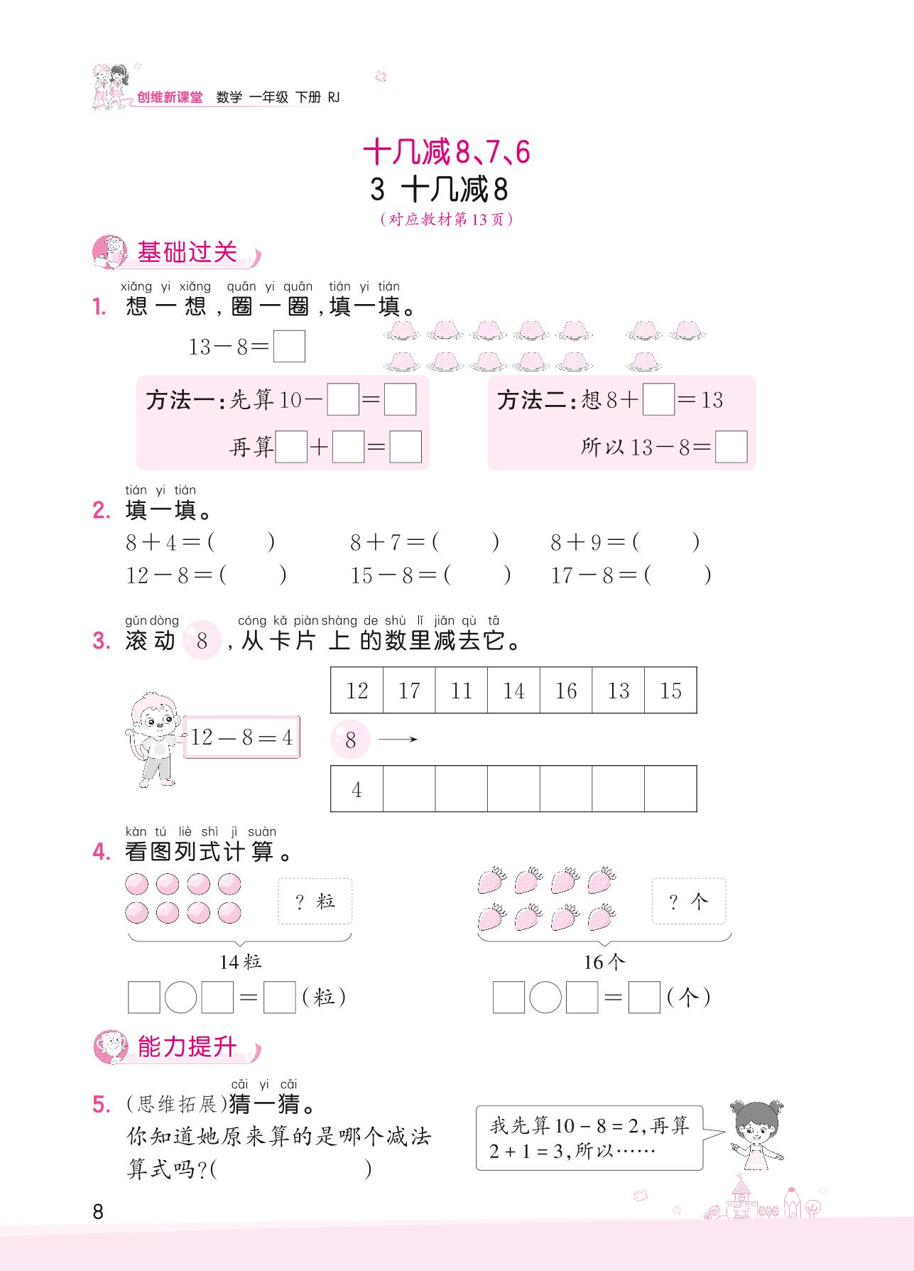 2022下册一年级数学人教版 二 20以内的退位减法——3 十几减8