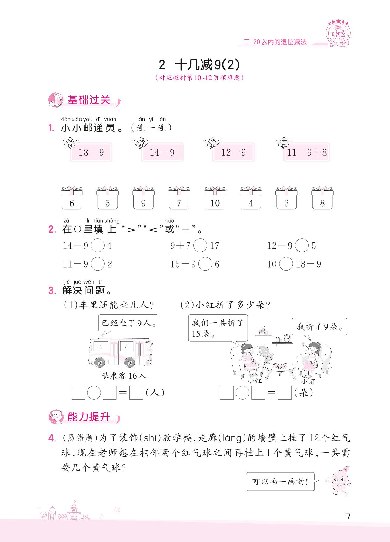 2022下册一年级数学人教版 二 20以内的退位减法——2 十几减9(2)
