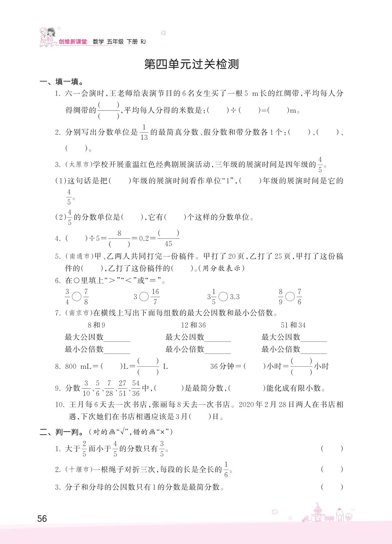 2022下册五年级数学人教版 第四单元过关检测