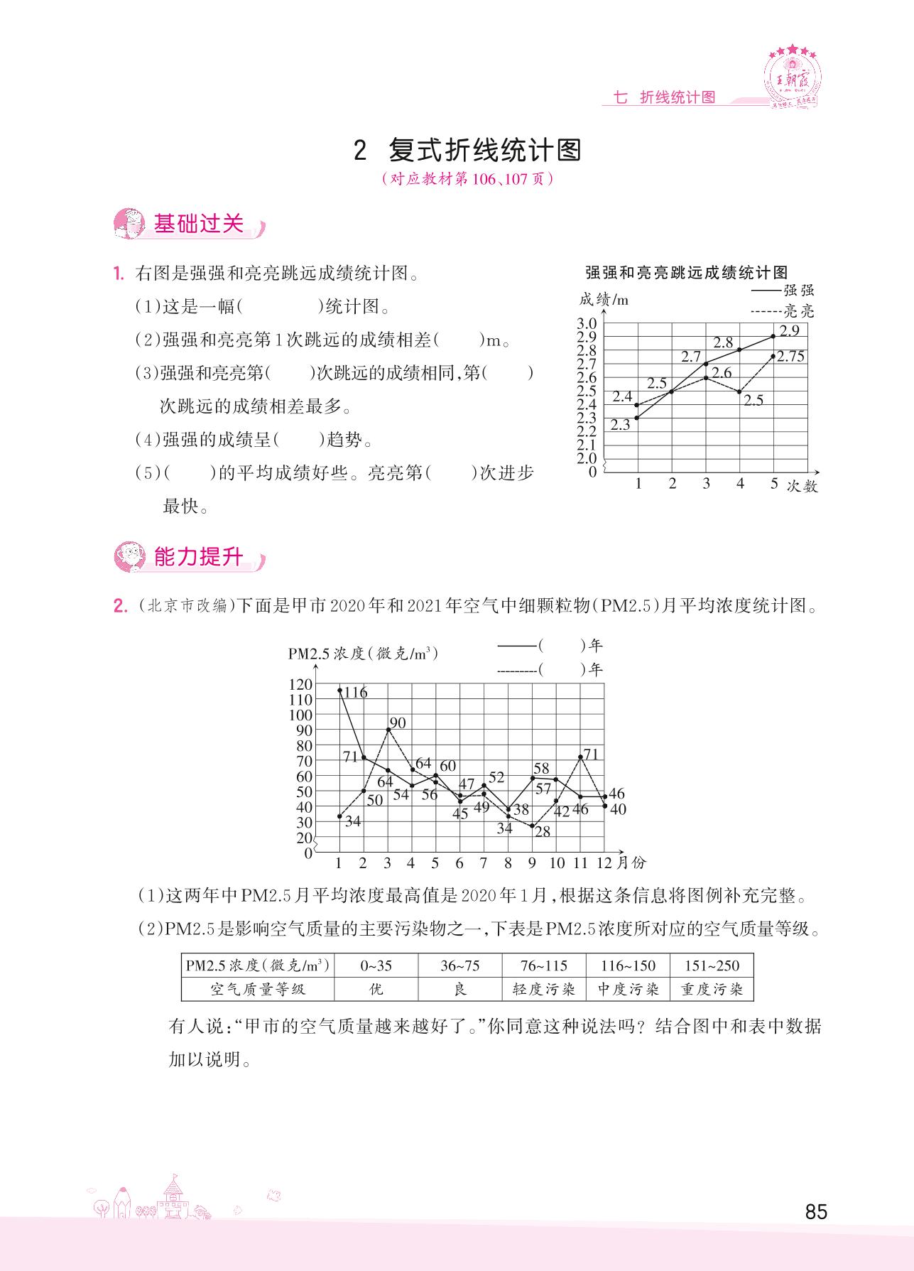 2022下册五年级数学人教版 七 折线统计图——2 复式折线统计图
