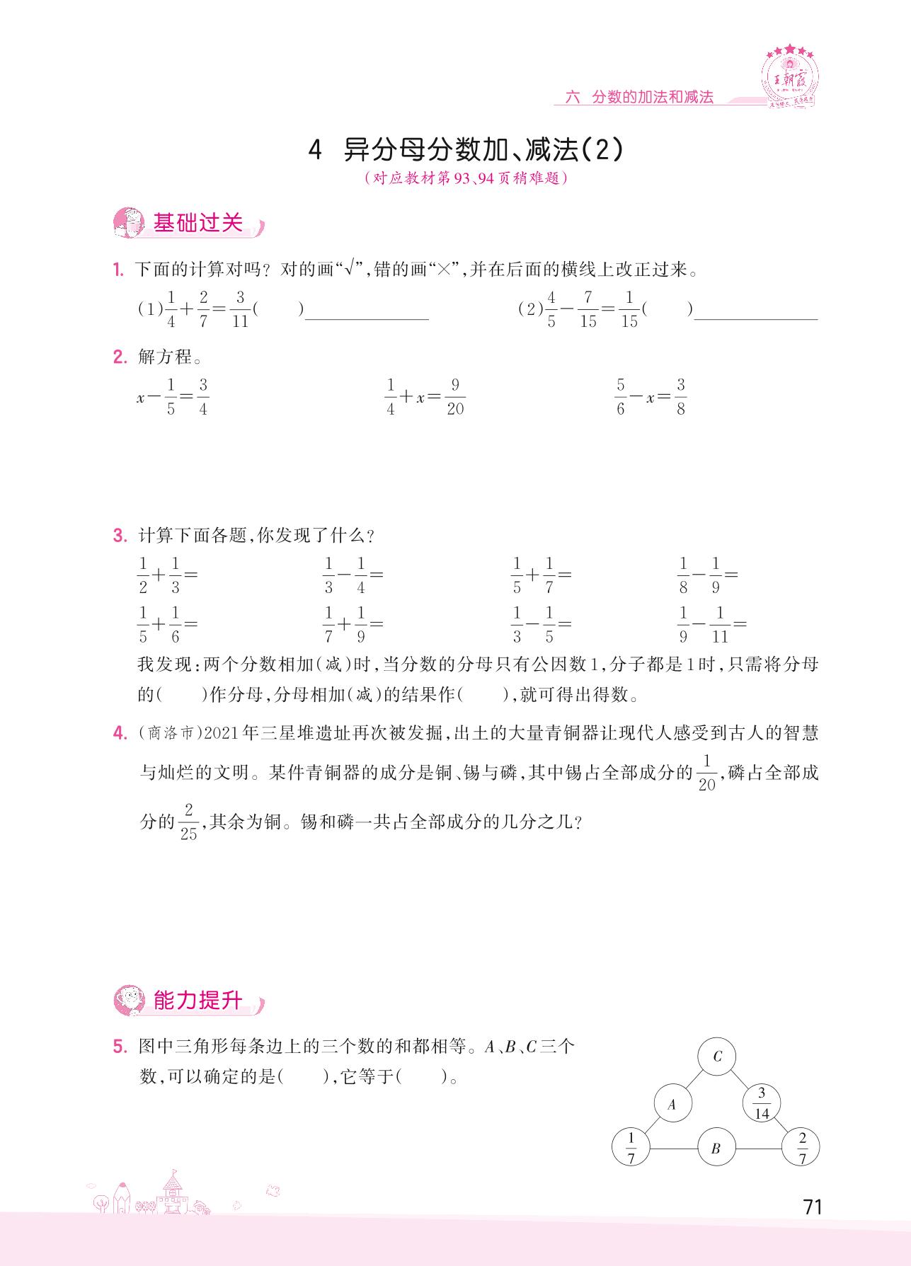 2022下册五年级数学人教版 六 分数的加法和减法——4 异分母分数加、减法(2)