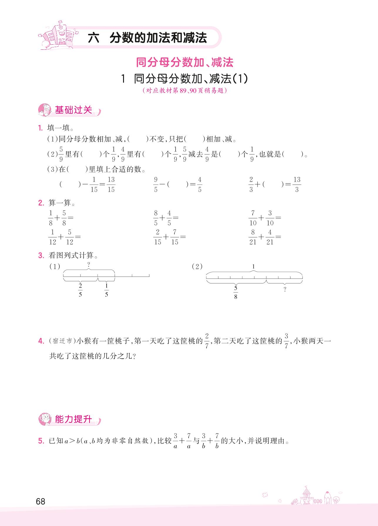2022下册五年级数学人教版 六 分数的加法和减法——1 同分母分数加、减法(1)