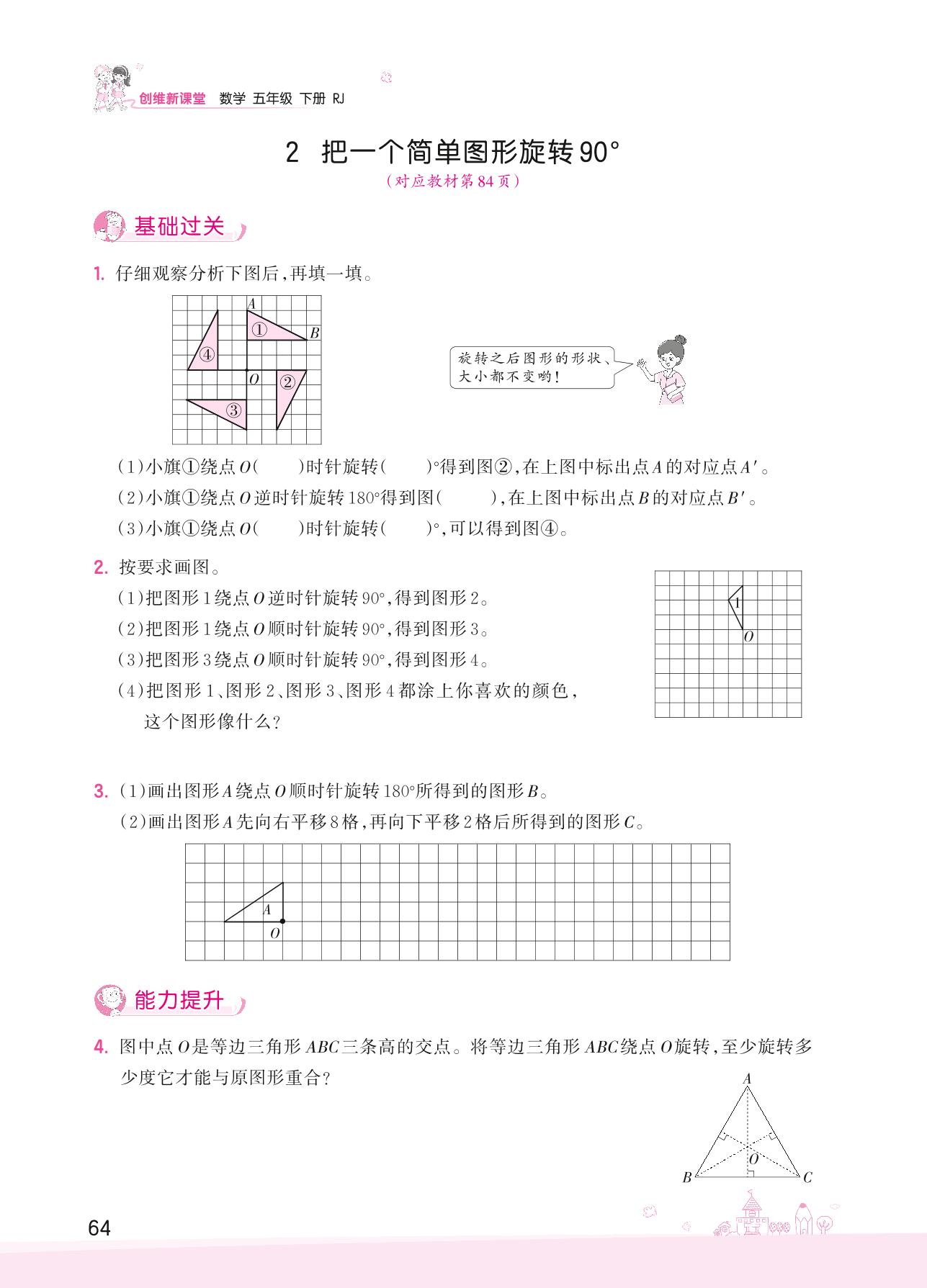 2022下册五年级数学人教版 五 图形的运动(三)——2 把一个简单图形旋转90°