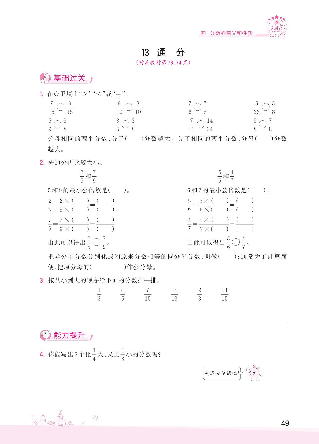 2022下册五年级数学人教版 四 分数的意义和性质——13 通分