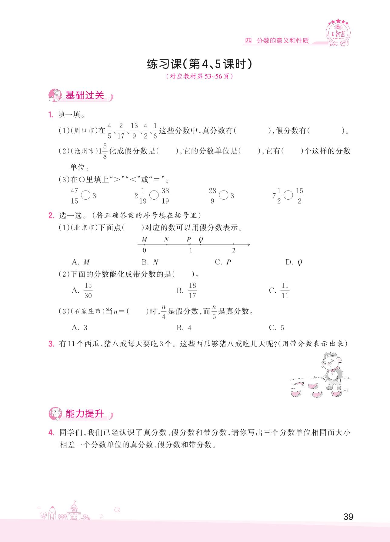 2022下册五年级数学人教版 四 分数的意义和性质——练习课(第4、5课时)