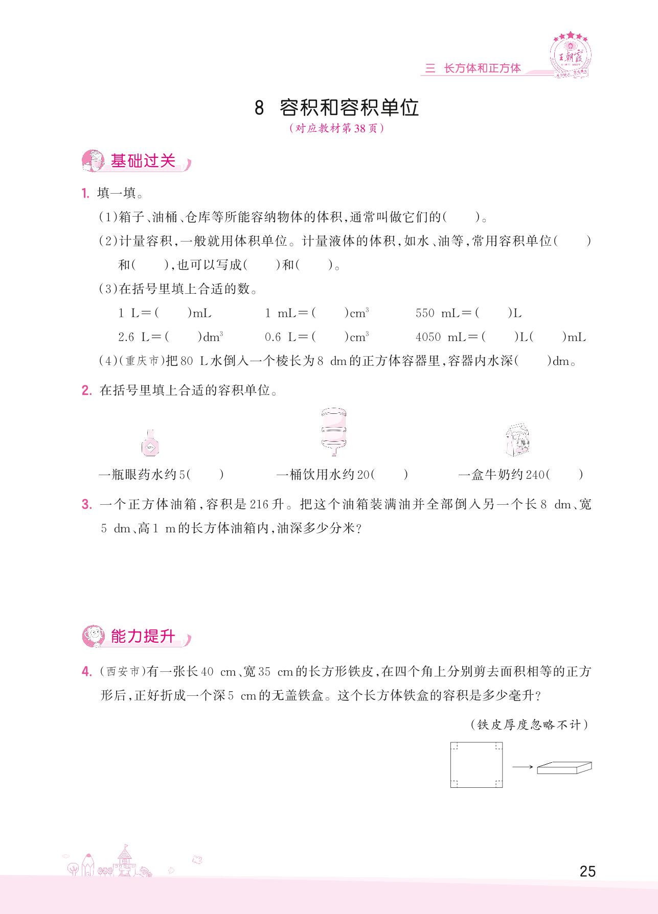 2022下册五年级数学人教版 三 长方体和正方体——8 容积和容积单位