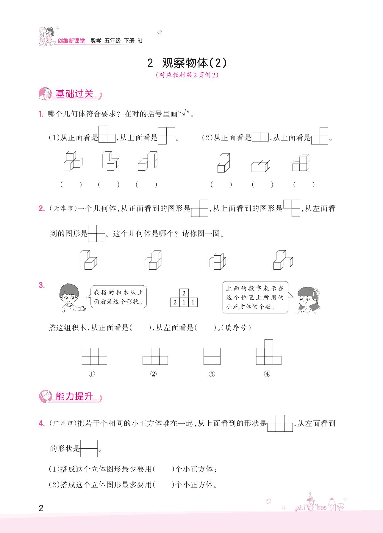 2022下册五年级数学人教版 一 观察物体(三)——2 观察物体(2)