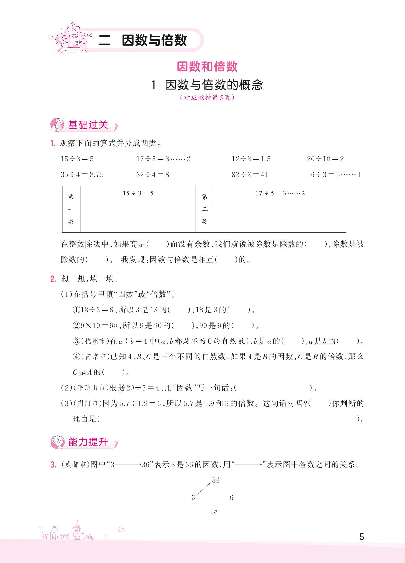 2022下册五年级数学人教版 二 因数与倍数——1 因数与倍数的概念