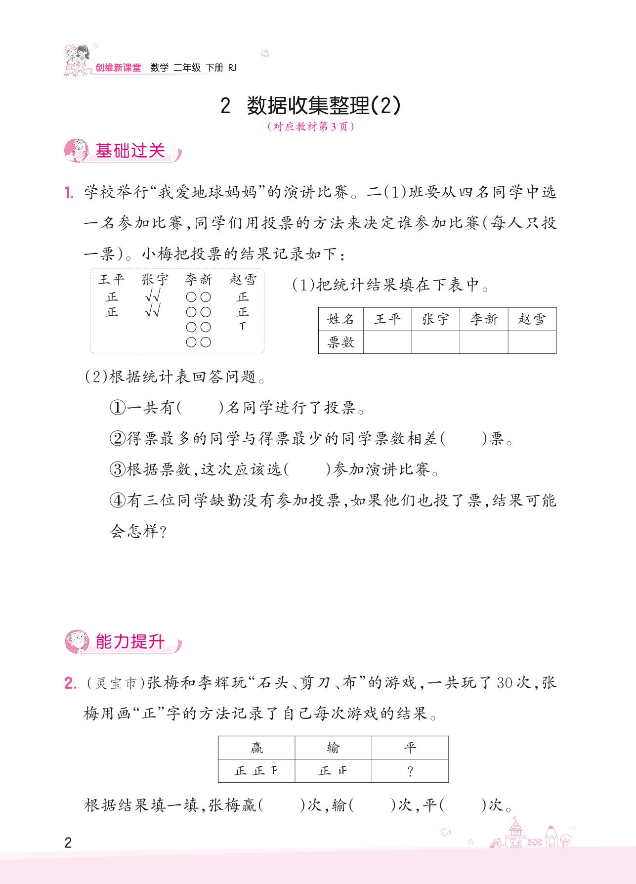 2022下册二年级数学人教版 一 数据收集整理——2 数据收集整理(2)