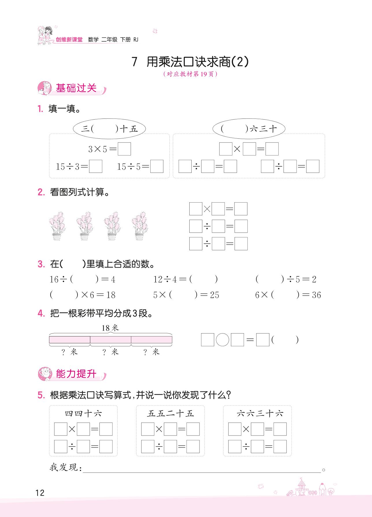 2022下册二年级数学人教版 二 表内除法(一)——7 用乘法口诀求商(2)