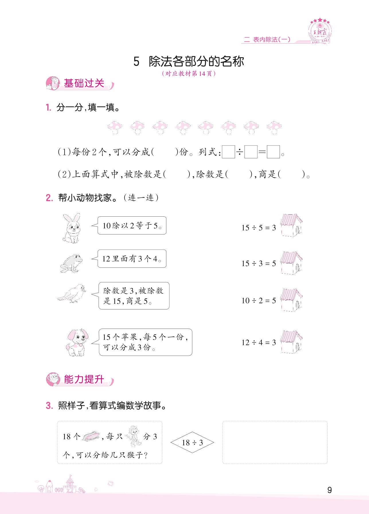 2022下册二年级数学人教版 二 表内除法(一)——5 除法各部分的名称