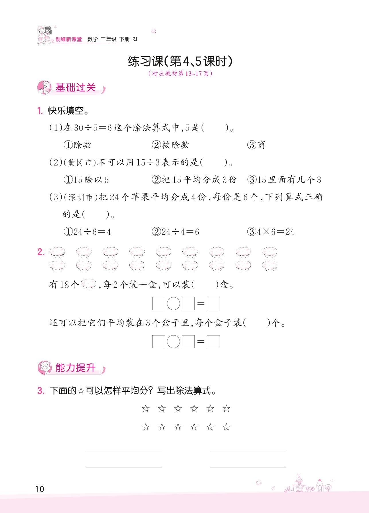 2022下册二年级数学人教版 二 表内除法(一)——练习课(第4、5课时)