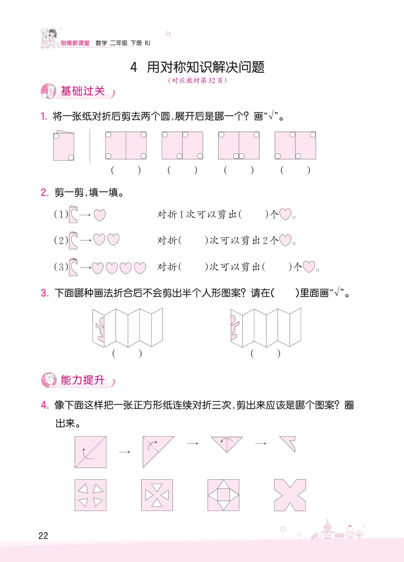 2022下册二年级数学人教版 三 图形的运动(一)——4 用对称知识解决问题
