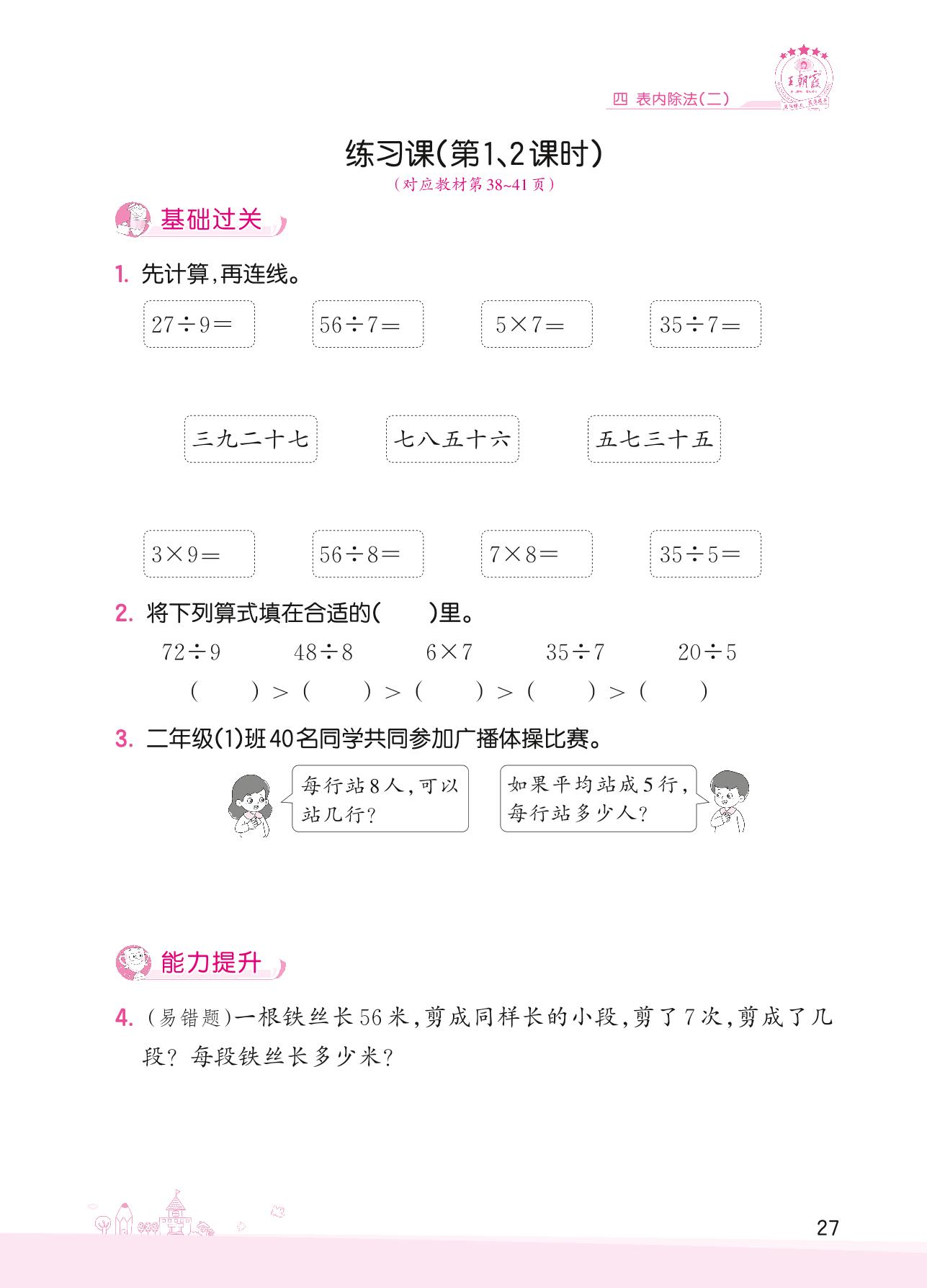 2022下册二年级数学人教版 四 表内除法(二)——练习课(第1、2课时)