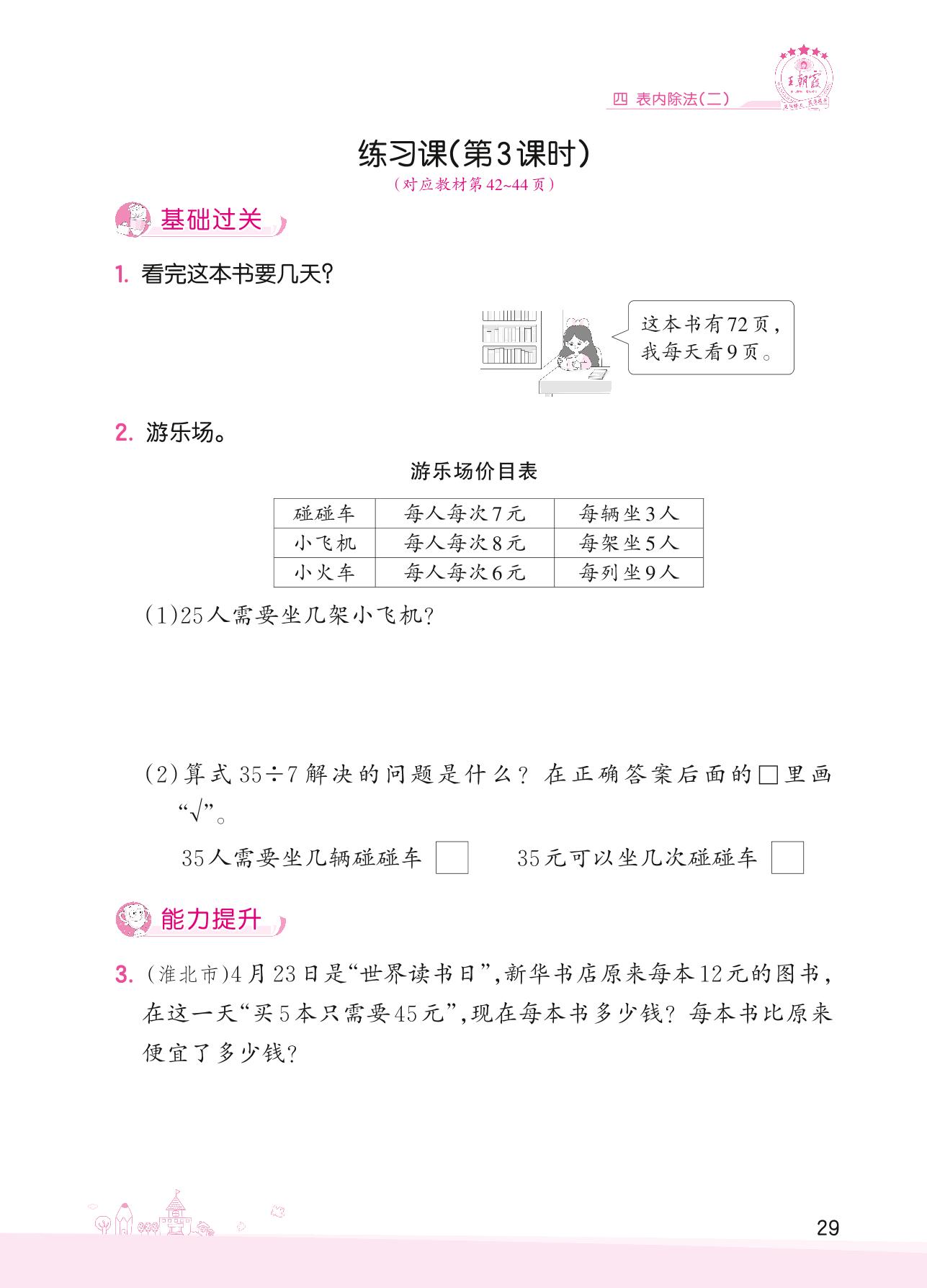 2022下册二年级数学人教版 四 表内除法(二)——练习课(第3课时)