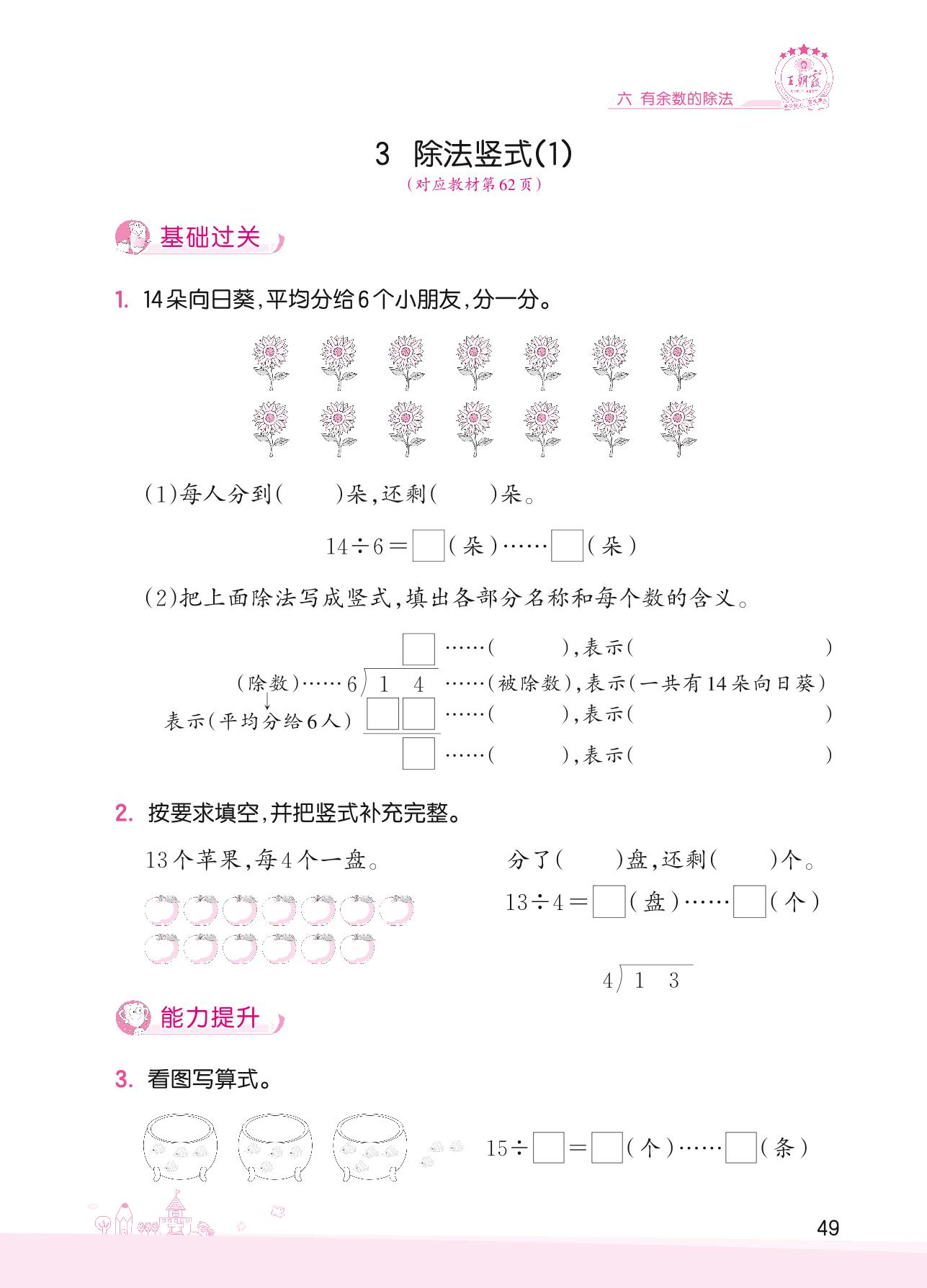 2022下册二年级数学人教版 六 有余数的除法——3 除法竖式(1)
